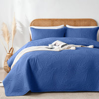 Oarage Queen Quilt Bedding Set Soft Lightweight Dark Blue Bedspread With Leaf Pattern,Ultrasonic Microfiber Bed Coverlet Full Si