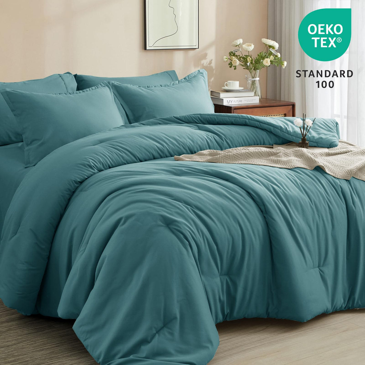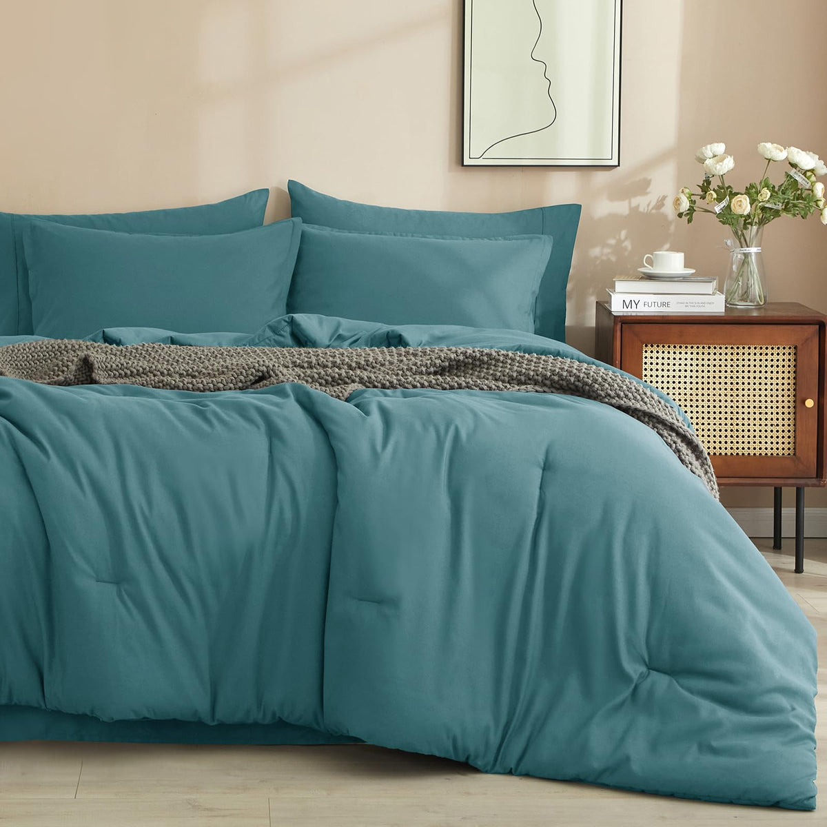 Phf 7 Pieces King Comforter Set, Bed In A Bag Comforter & 18' Sheet Set All Season, Ultra Soft Comfy Bedding Sets With Comforter, Sheets, Pillowcases & Shams, Teal Blue
