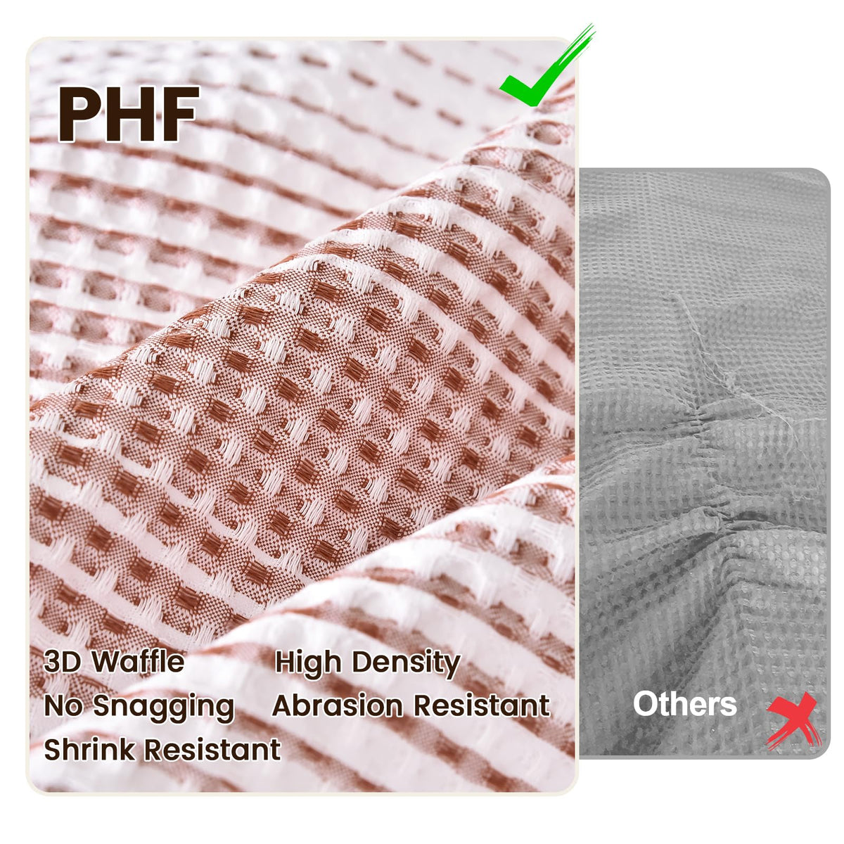 Phf Waffle Weave Duvet Cover Set Queen Size, Striped Yarn-Dyed Texture Soft Breathable Durable Comforter Cover For All Season, Duvet Cover With Pillow Shams Bedding Collection, 90'X90',White And Brick
