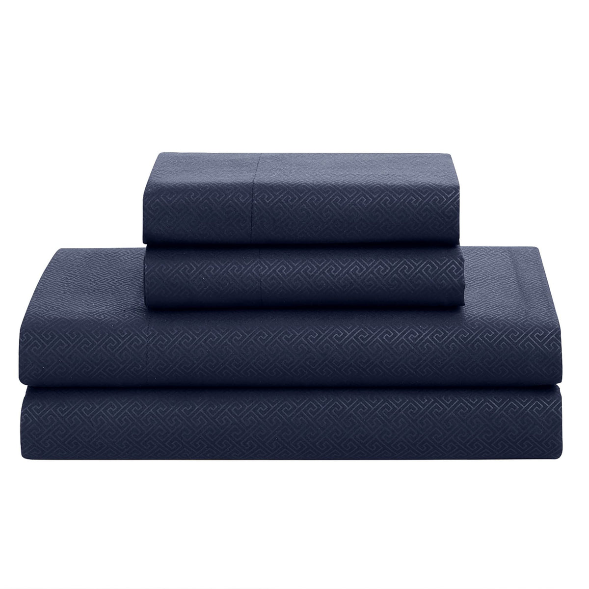 Queen Comforter Set 8 Piece Bed In A Bag With Bed Skirt, Fitted Sheet, Flat Sheet, 2 Pillowcases, 2 Pillow Shams, Queen, Greek Key Navy