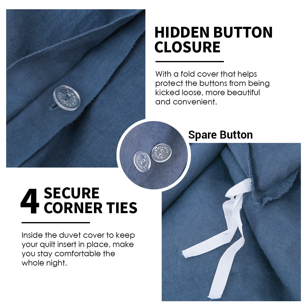 Simple&Opulence 100% Linen Duvet Cover Set 3Pcs Basic Style Natural French Washed Flax Solid Color Soft Breathable Farmhouse Bedding With Button Closure - Classic Blue, King
