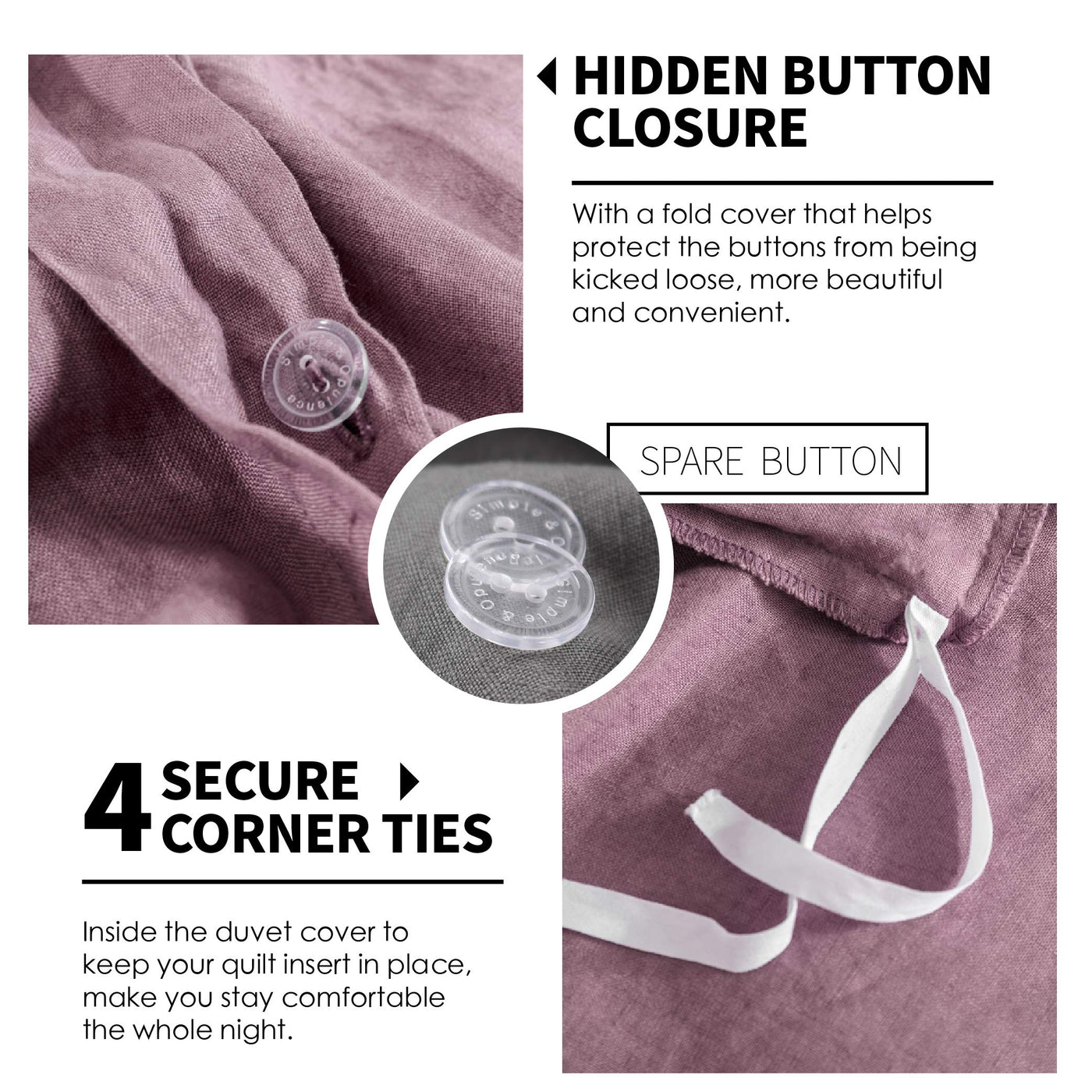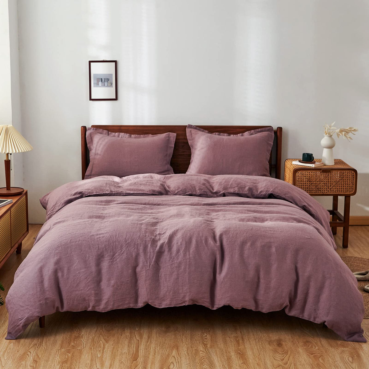 Simple&Opulence 100% Linen Duvet Cover Set 3Pcs Basic Style Natural French Washed Flax Solid Color Soft Breathable Farmhouse Bedding With Button Closure - Purple, King
