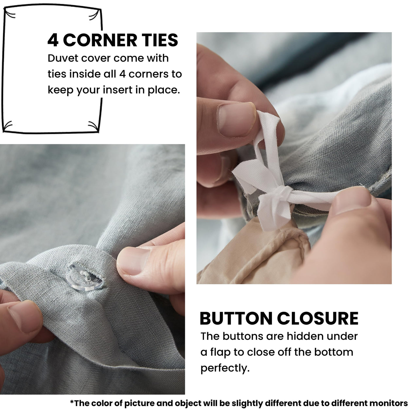 Simple&Opulence 100% Linen Duvet Cover Set With Crossed Embroidery Washed - 3 Pieces (1 Duvet Cover With 2 Pillow Shams) Soft Breathable Farmhouse - Dusty Blue, King Size
