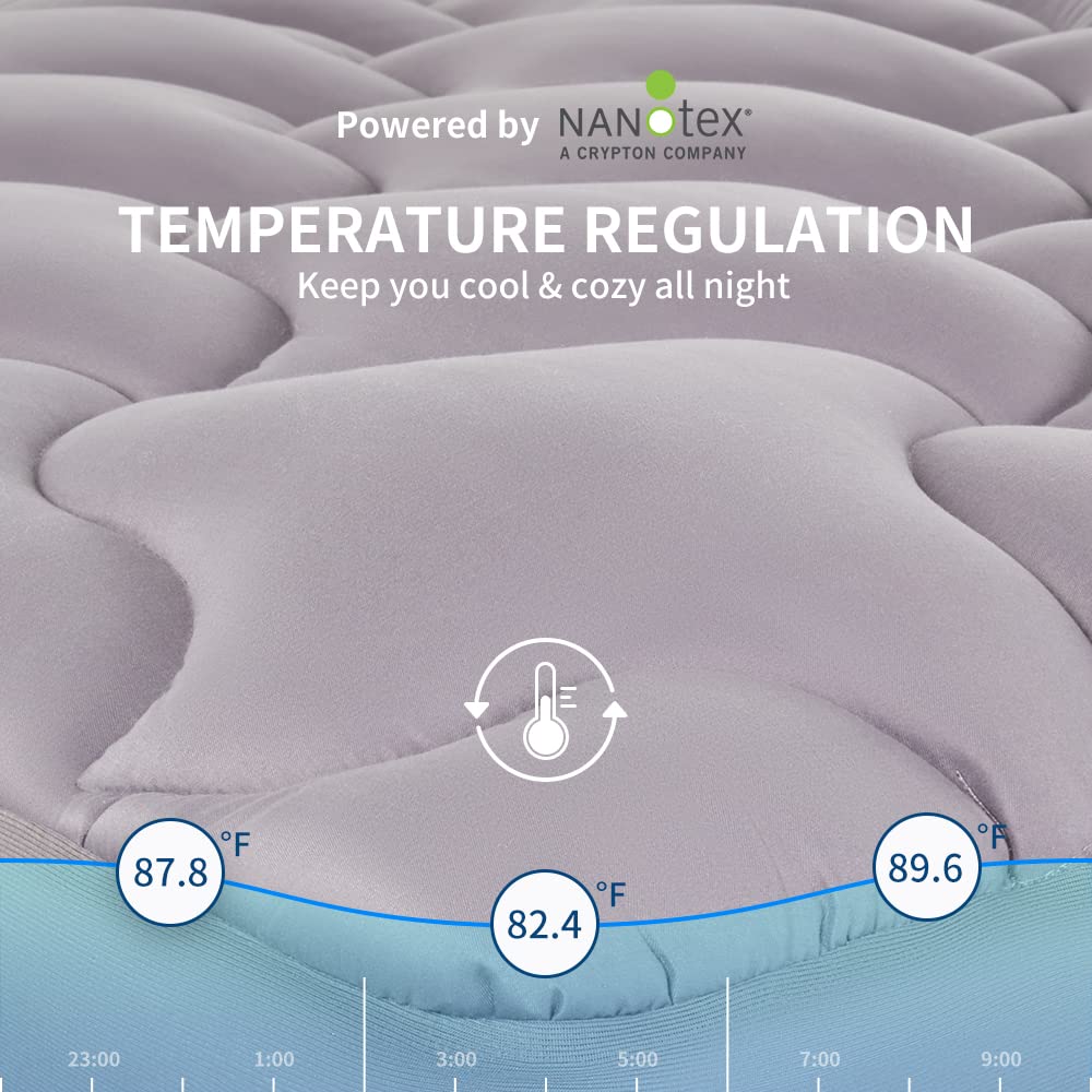 SLEEP ZONE Cooling Mattress Topper Full Size Mattress Pad, Quilted Fitted Mattress Cover, Machine Washable, Soft Fluffy Down Alternative, Deep Pocket 8~21 inch (Grey, Full)
