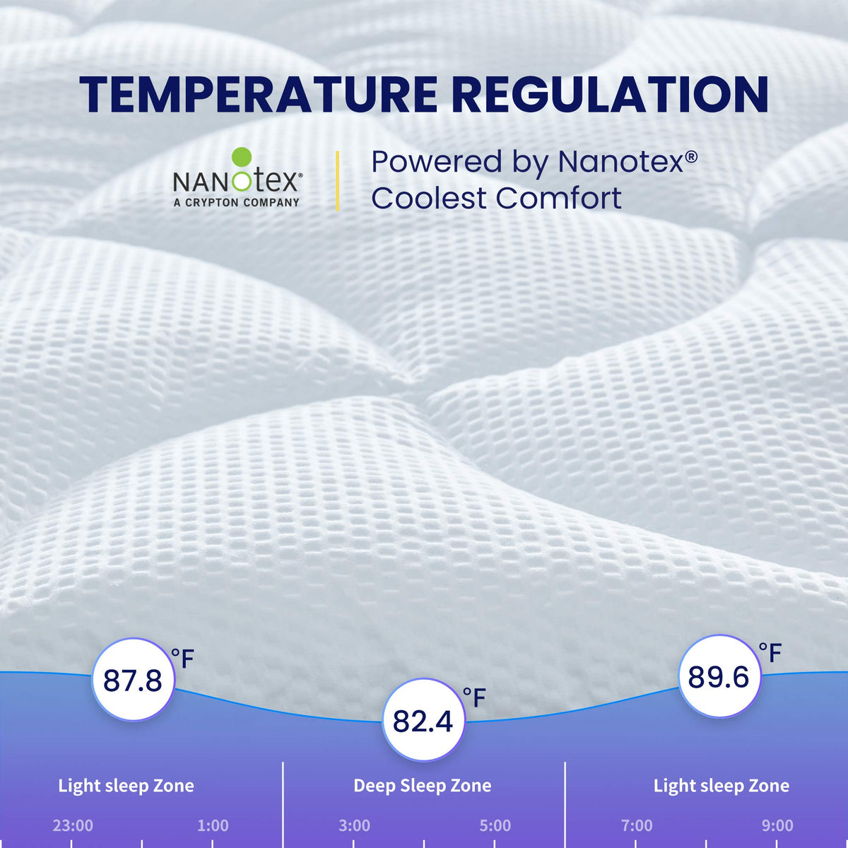 Sleep Zone Cooling Mattress Topper Twin Xl For Single Bed, Premium Zoned Quilted Mattress Pad, Fitted Mattress Protector Cover, Machine Wash Durable, Deep Pocket 8-21 Inch (White, Twin Xl)