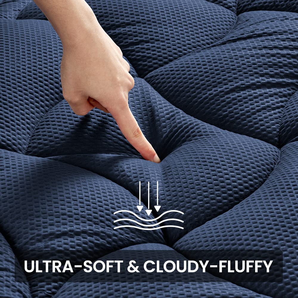 SLEEP ZONE Cooling Queen Mattress Pad, Premium Zoned Quilted Fitted Mattress Topper, Wrap Around Mattress Protector Cover, Machine Wash Durable, Deep Pocket 8-21 inch (Navy, Queen)