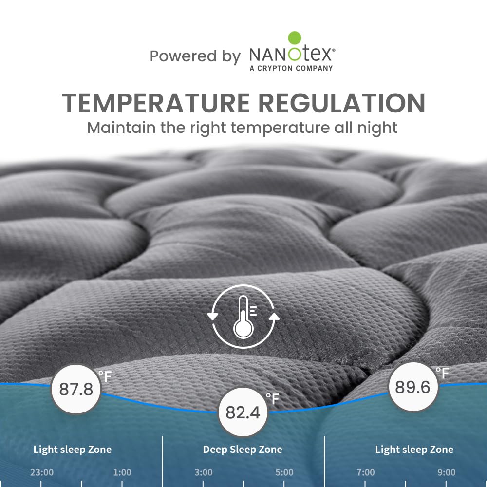 Sleep Zone Cooling Rv Mattress Topper, Premium Zoned Cool Mattress Pad Cover, Padded Mattress Protector Breathable Washable, Deep Pocket 8-21' (Grey, Short Queen)