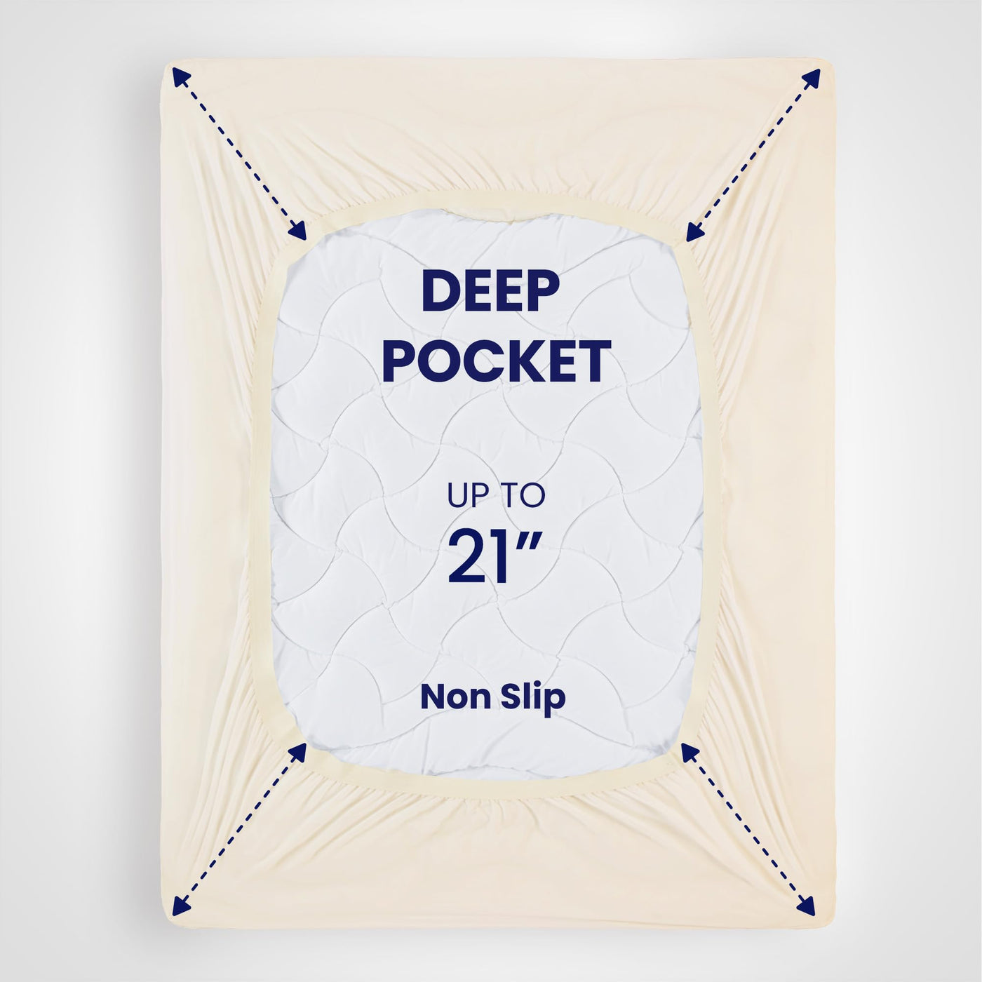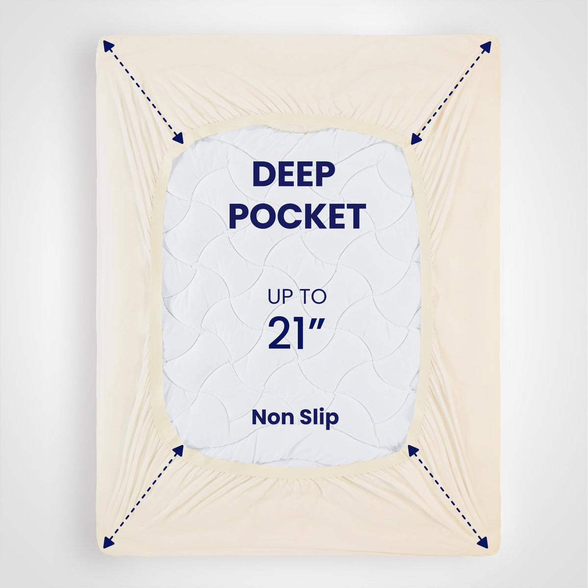 SLEEP ZONE King Size Cooling Mattress Pad, Premium Zoned Quilted Fitted Mattress Topper, Elastic Mattress Protector Cover, Machine Wash Durable, Deep Pocket 8-21 inch (Beige, King)