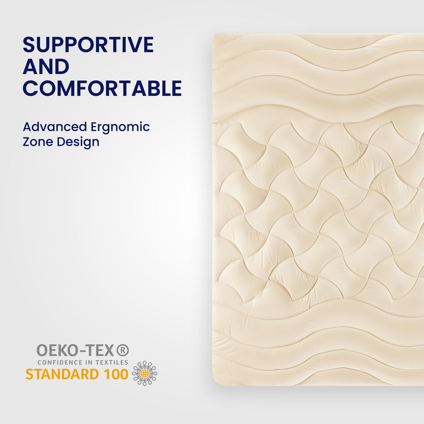 Sleep Zone King Size Cooling Mattress Topper, Premium Zoned Cool Mattress Pad Cover, Padded Mattress Protector Breathable Washable, Deep Pocket 8-21' (Beige, King)