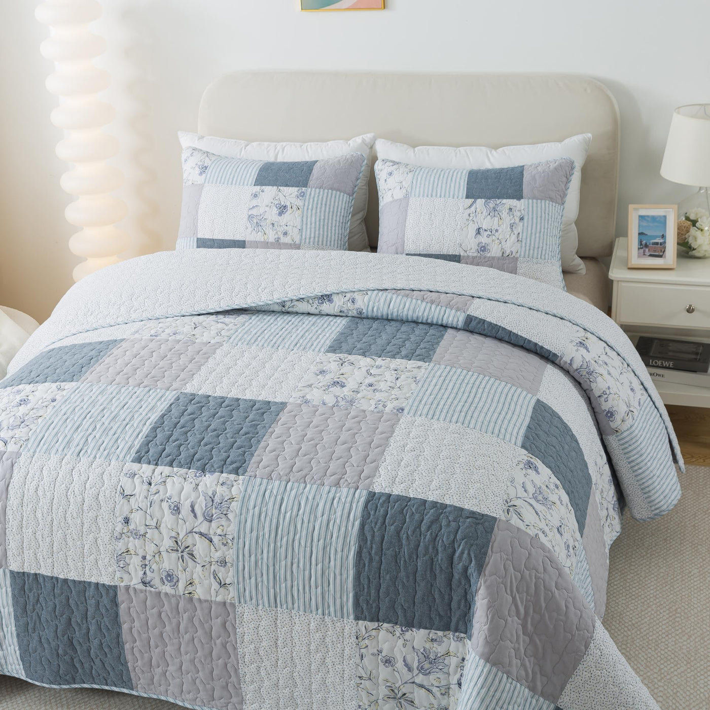 Slpr Coastal Dream Cotton Pieced Quilt Set - Queen Size With 2 Shams, Soft Purple & Blue Patchwork Quilted Bedspread, Farmhouse