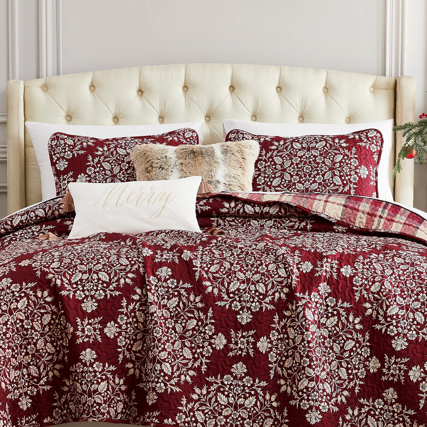 Southshore Fine Living, Inc. Christmas Quilt Set, Twin/Twin Xl Size 5-Piece Christmas Bedding Set W/Shams & Throw Pillows; Rever
