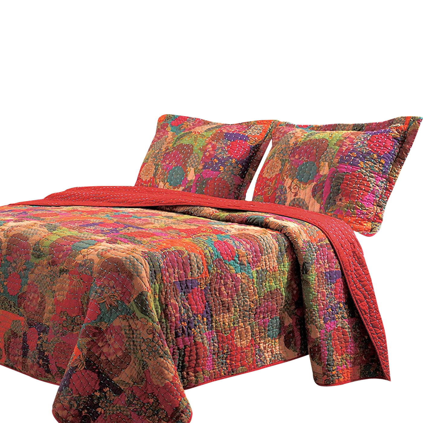 Update Your Bedroom Space With The Inclusion Of This Cozy King Size Quilt And 2 Pillow Shams Set. Generously Crafted In Multicolor Cotton Fabric Showcases Floral And Fruit Patterns To Give An Appealing Look. It Is Safe To Toss In The Washing Machine For Effortless Upkeep And Making It A Comfortable Companion To Your Bed.