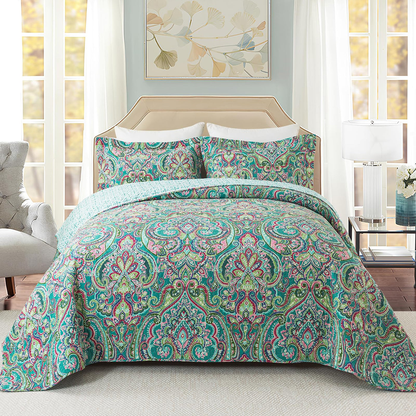 Descriptiontravan 3-Piece Bedspread Quilt Set Is A Great Gift For Decorating In A Simple And Fashion Way. It Is Made Of High Quality Material, Made By Exquisite Craftsmanship And Designed By Unique Pattern. Soft And Comfortable Sense Of Touch Assures That You Will Have A Good And High-Quality Sleep. It Will Make Your Household Brand-New, And Create A Modern Style. Material 100% Microfiber.Product Features Suitable For All Year Around: To Be Warm And Lightweight, It Can Be Used Separately In Summer As A Blanket Or Used For Layering In Winter.Made By High-Level Printing And Dyeing, The Patterns Of Bedspread Quilt Are Beautiful And Have Good Color Fastness.Its Intense Density Makes It Durable, Fade-Resistant And Wrinkle-Resistant. Reversible Quilt--Both Sides Can Be Used. Package Includes3 Pieces Bedspread Quilt Set (Queen Size)1 X Quilt (98*90 Inch)2 X Pillowcases (20*27 Inch)Care Instructionsuggest Wash Separatelymachine Wash With Cold Water, Not Bleach, Tumble Dry, Low Heat, Do Not Dry-Clean