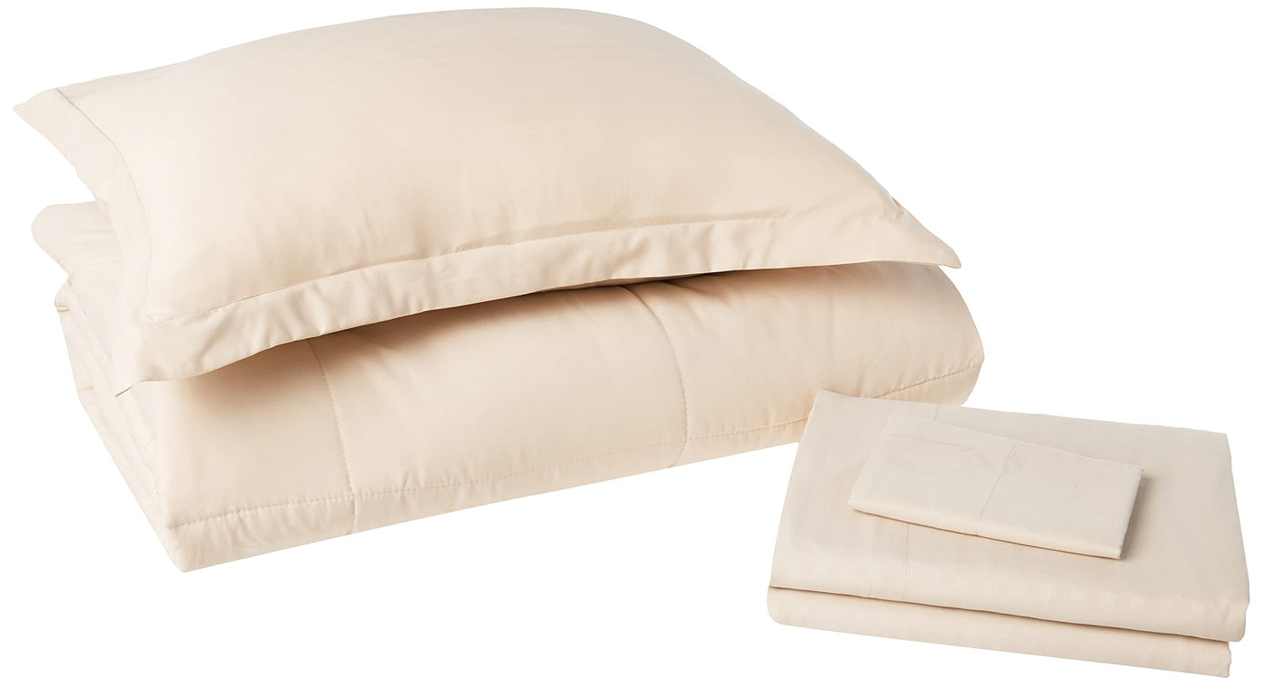 Twin Comforter Set 6 Piece Bed In A Bag With Bed Skirt, Fitted Sheet, Flat Sheet, 1 Pillowcase, And 1 Pillow Sham, Twin, Dobby Beige