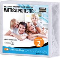 Utopia Bedding Waterproof Mattress Protector California King Size 2 Pack, 200 Gsm Breathable Terry Mattress Cover, Fitted Style