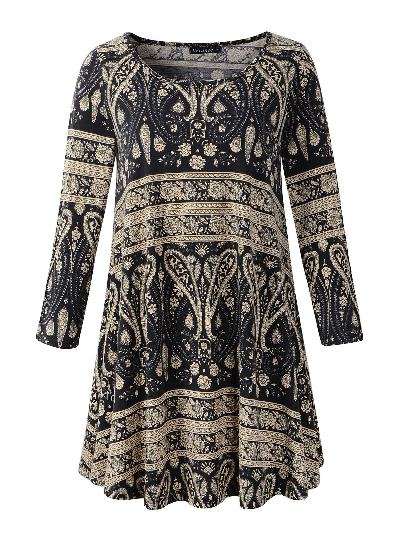 Veranee Womens Plus Size Swing Tunic Top 34 Sleeve Floral Flare T-Shirt (Xxx-Large, 16-10)