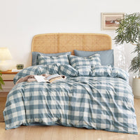 Wake In Cloud - Gingham Cotton Duvet Cover Set, Plaid Buffalo Check Checkered Farmhouse, 100% Washed Cotton Textured Percale Bed