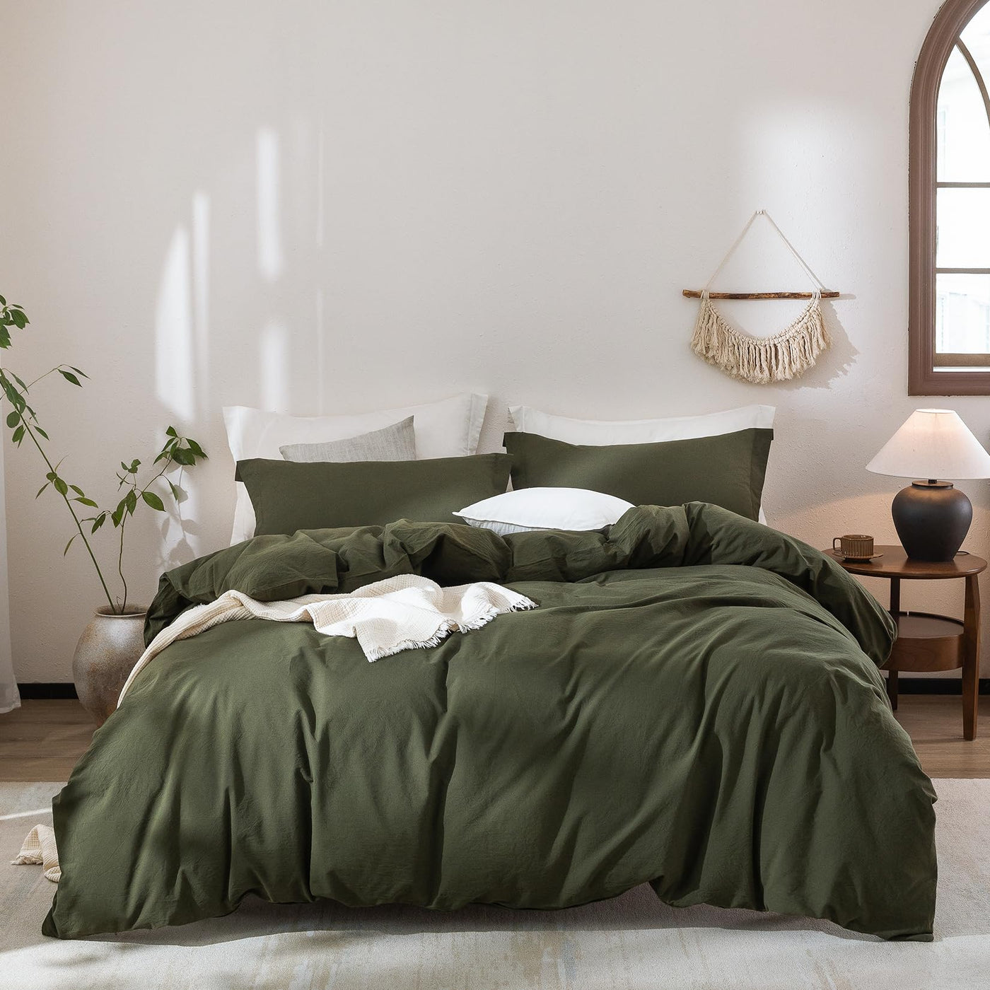 Warm Moment Olive Green Duvet Cover California King Size, 100% Washed Cotton Bedding Set Cover 1 Duvet Cover 104Inch X 98Inch Wi