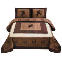 Western Collection New 3 Pieces Western Stars And Horses Cowboy Luxury Home Quilt Bedspread Oversize Comforter (King Brown Horse