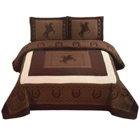 Western Collection New Western Stars And Horses Cowboy Luxury Home Quilt Bedspread Oversize Comforter (Queen Brown Horse)