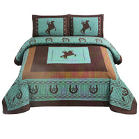 Western Collection New Western Stars And Horses Cowboy Luxury Home Quilt Bedspread Oversize Comforter (Queen Turquoise Horse)