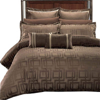 The Royal Hotel Collection Is A Rich Contemporary Jacquard Design In Warm Stylish Tones. The Duvet Cover Set Is Completed With Coordinated Two Pillow Shams, Two European Shams And Two Decorative Cushions. The Over All Look Is One Of The Simplicity And Elegance That Will Be Enjoyed For Years To Come. The Front Is Made Of 100% Polyester Jacquard And The Back Is Made Of Cotton Rich ( 50% Cotton 50% Polyester).