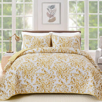 Wongs Bdeeing Quilt King Size, Yellow Quilt Bedding Set With 2 Pillowcases, Botanical Quilt For King Bed, Soft Microfiber Lightw