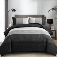 Wongs Bedding Black Comforter Set Queen, Reversible Black Grey Stripe Down Alternative Comforter For All Season,3 Pieces(1 Patch