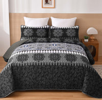 Xruibed Grey Quilt Set King Bohemian Striped Quilt Coverlet Set 3 Pieces Boho Patchwork Bedspread With 2 Pillow Shams Elegant So