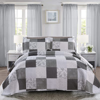 Ycosy Floral Quilt Set King Size Patchwork Plaid Bedding Set Flower Reversible Bedspread Morden Lightweight Coverlet Grey White