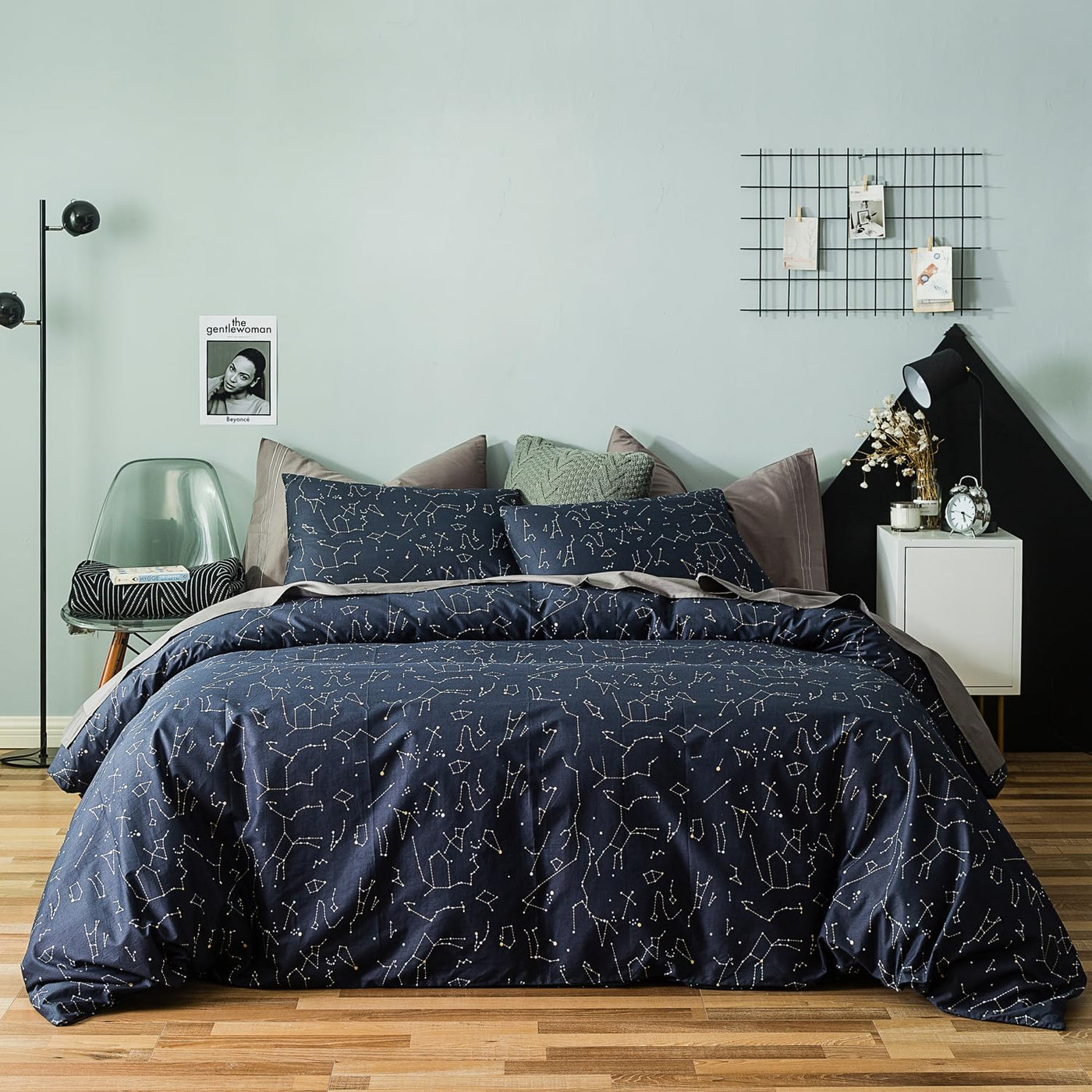 Yuheguoji Blue Celestial Duvet Cover King 100% Cotton Cute Constellation Duvet Cover 3 Pcs Set 1 White Stars Galaxy Duvet Cover