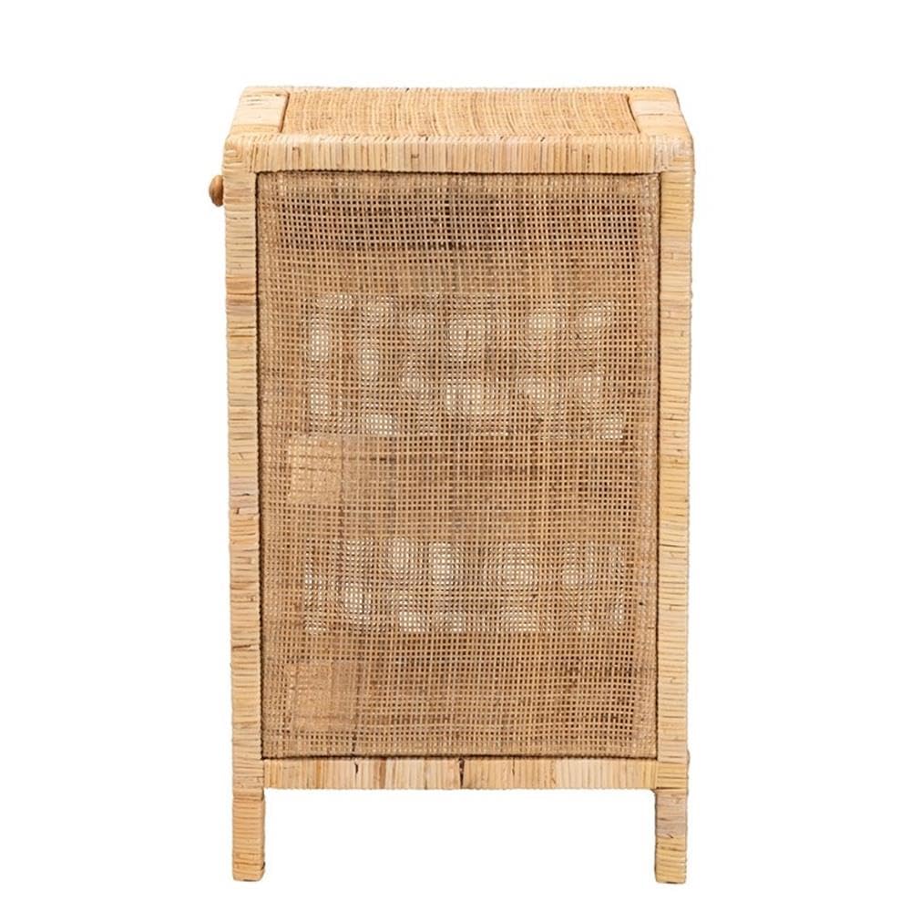 Baxton Studio Bella Modern Bohemian Natural Brown Mahogany Wood And Natural Rattan 1-Drawer Nightstand