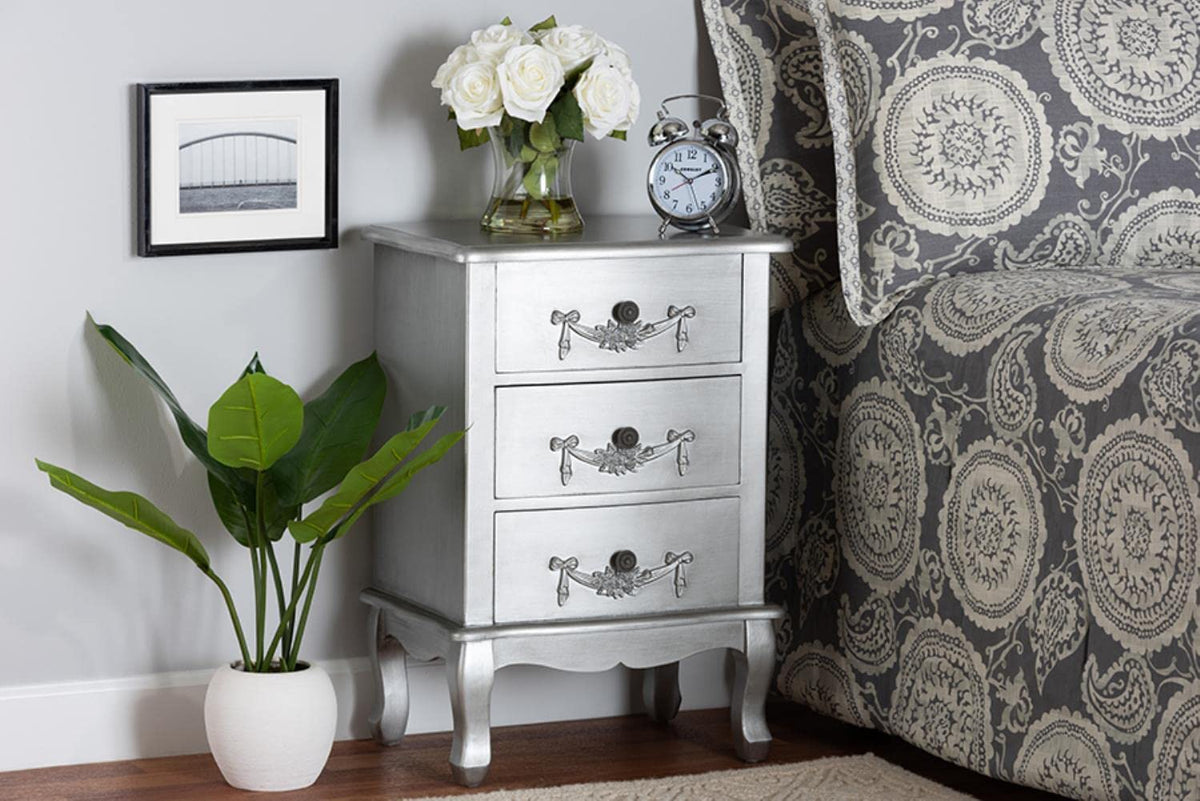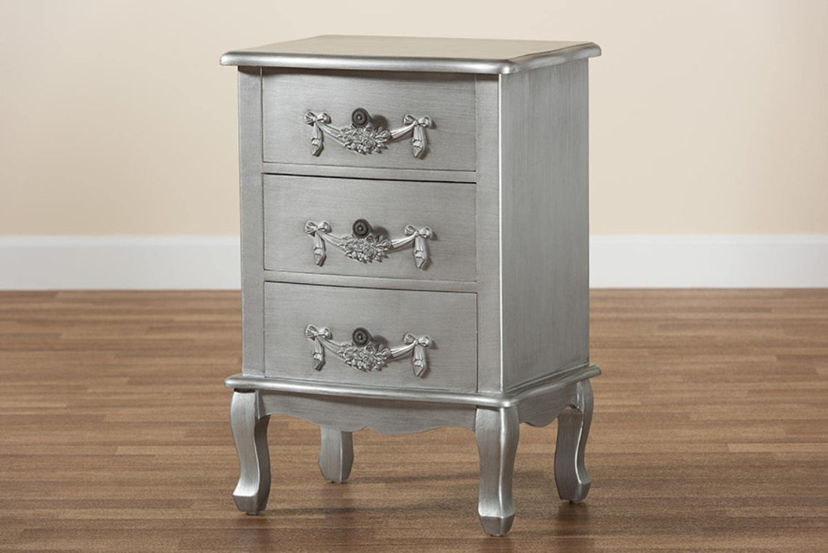 Baxton Studio Callen Brushed Silver Finished Wood 3-Drawer End Table