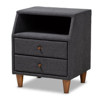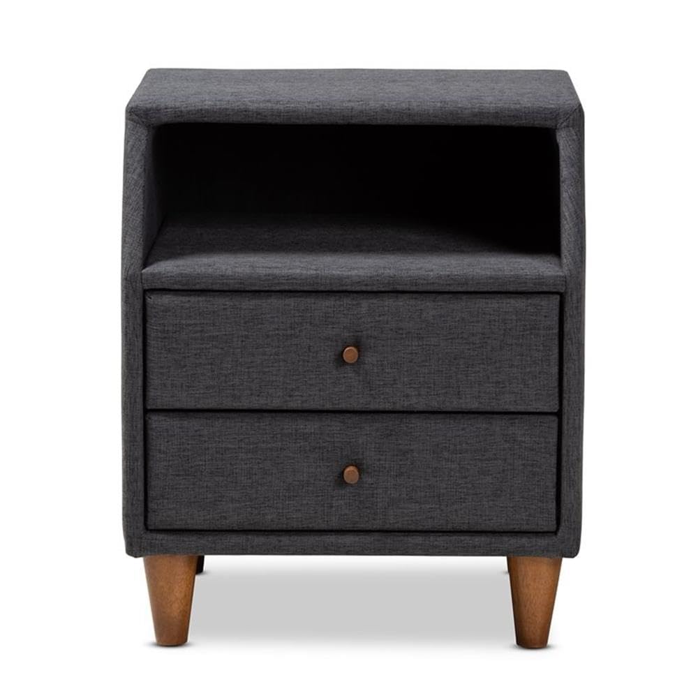 Baxton Studio Claverie Mid-Century Modern Charcoal Fabric Upholstered 2-Drawer Wood Nightstand
