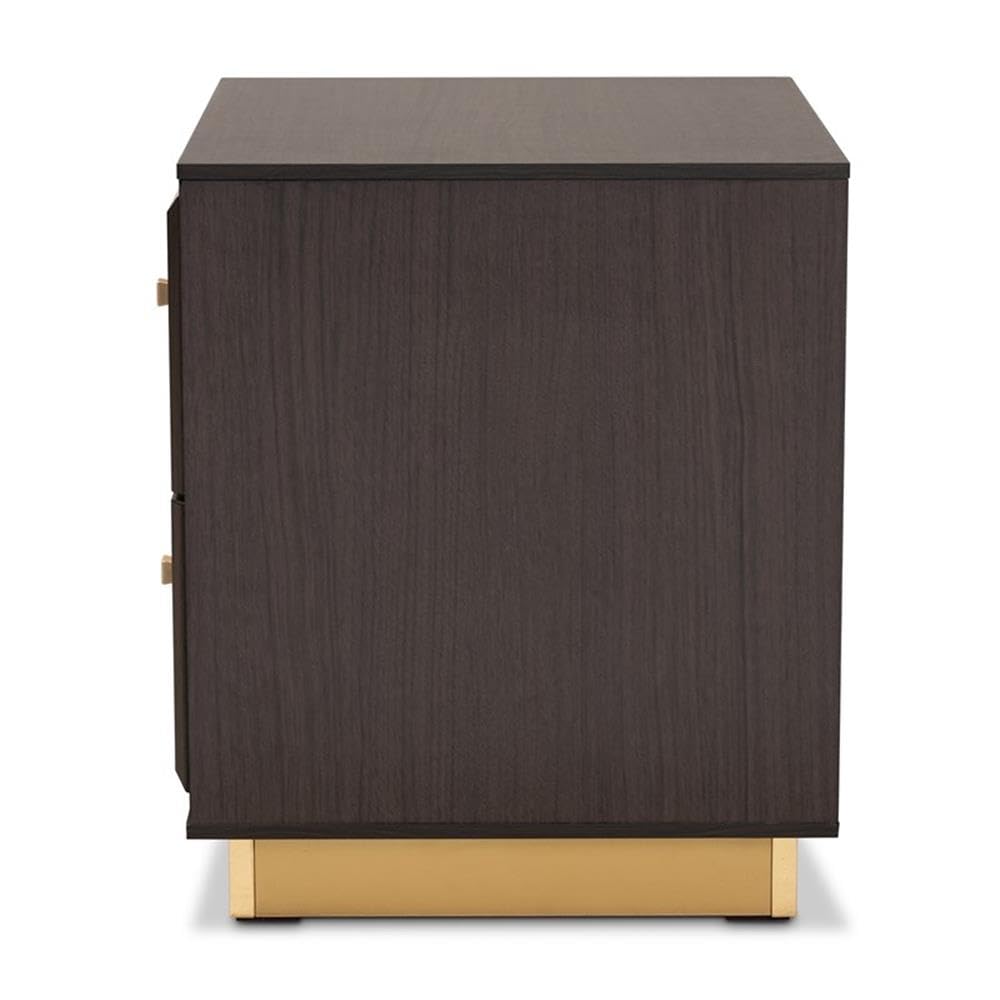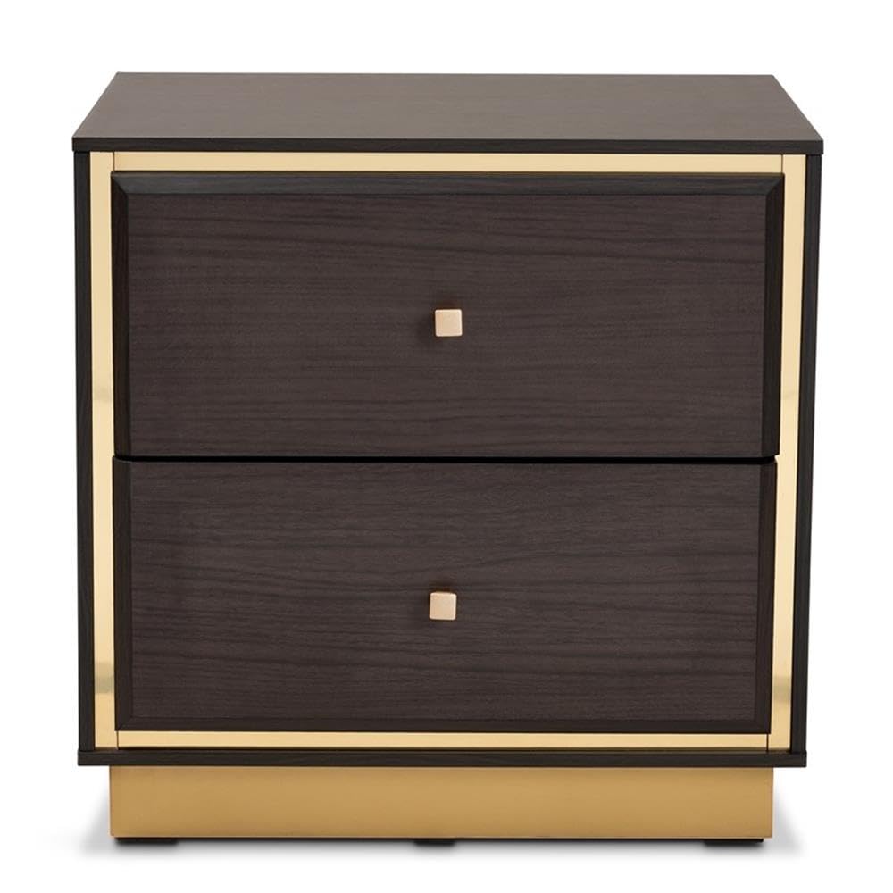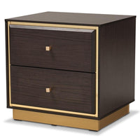 Baxton Studio Cormac Mid-Century Modern Transitional Dark Brown Finished Wood and Gold Metal 2-Drawer Nightstand