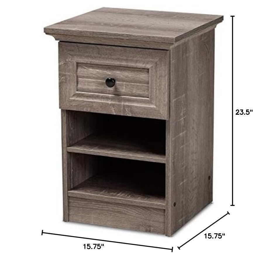 Baxton Studio Dara Traditional Transitional Grey Brown Oak Finished 1-Drawer Wood Nightstand