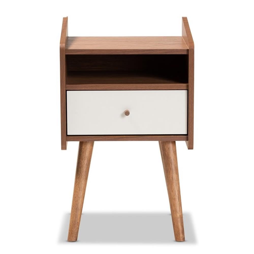 Baxton Studio Elario Mid-Century Modern Two-Tone Grey and Walnut Brown Finished Wood 1-Drawer Nightstand