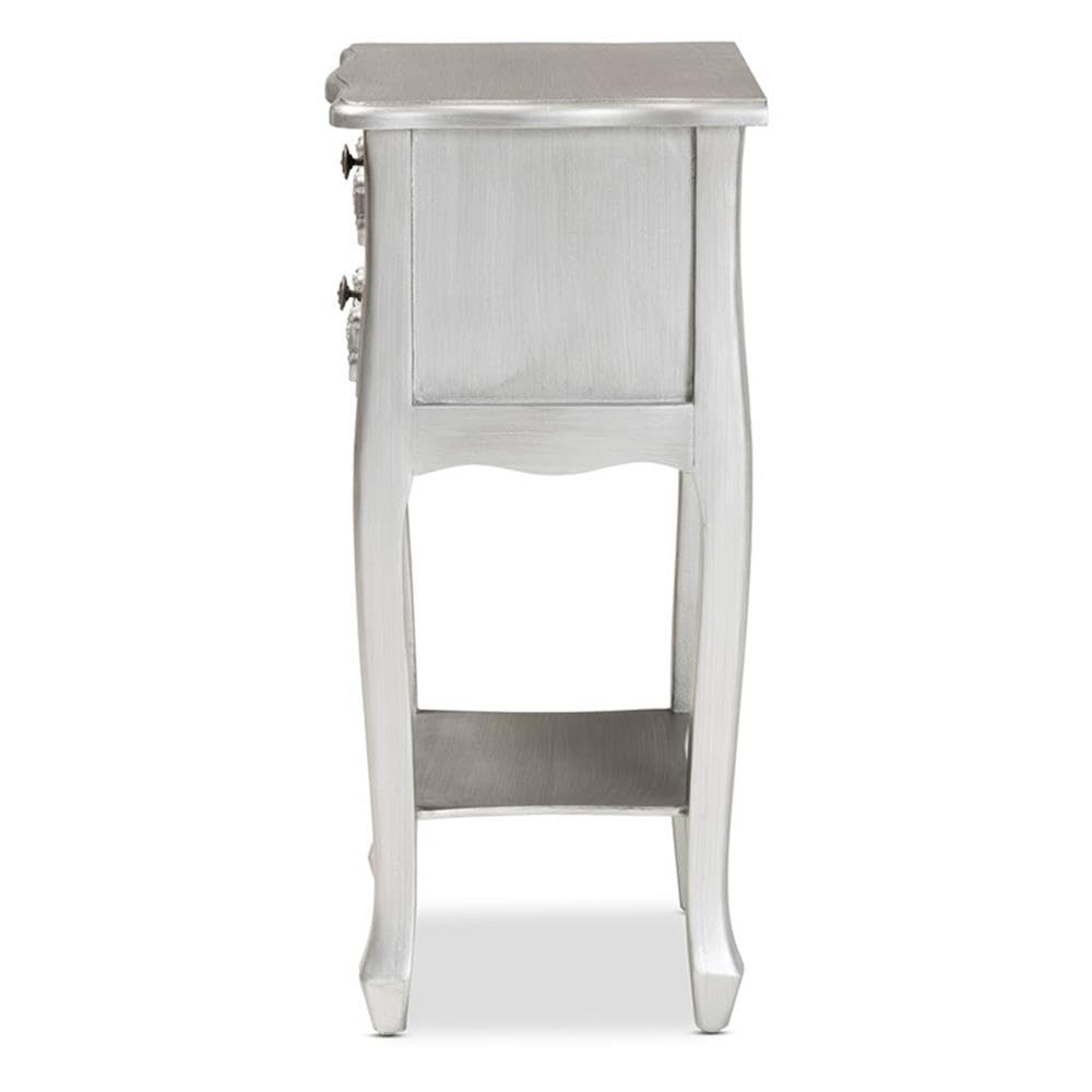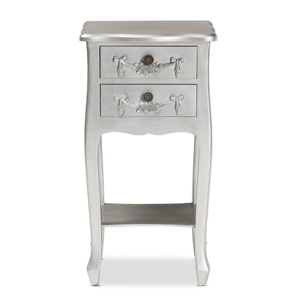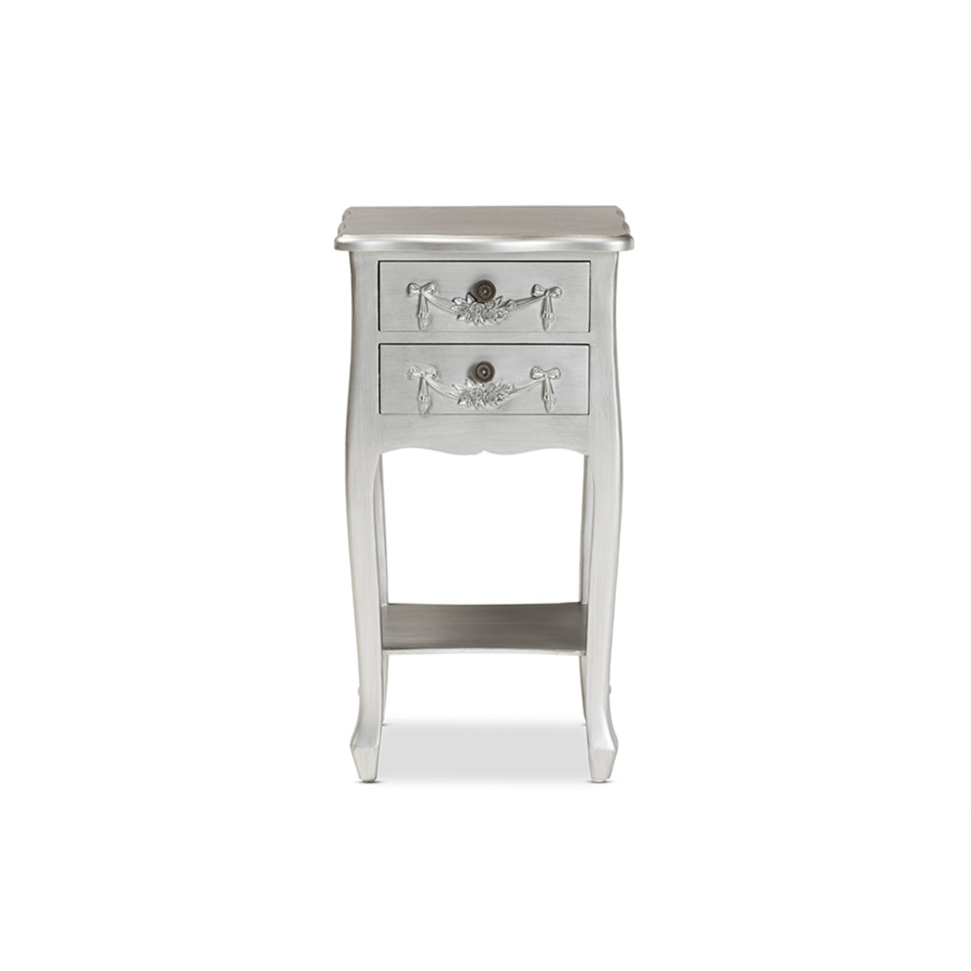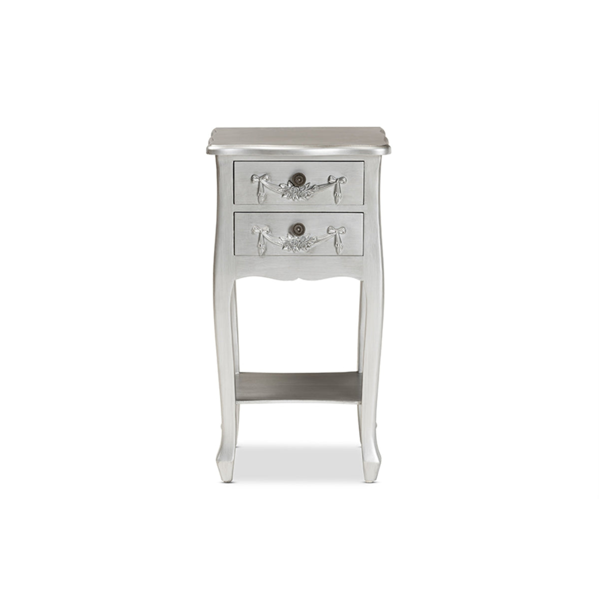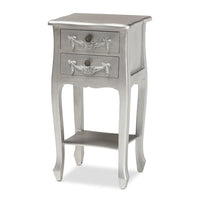 Baxton Studio Eliya Classic and Traditional Brushed Silver Finished Wood 2-Drawer Nightstand
