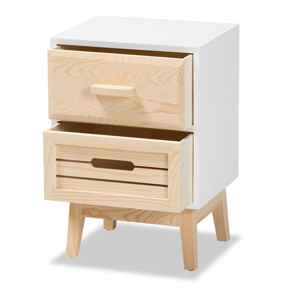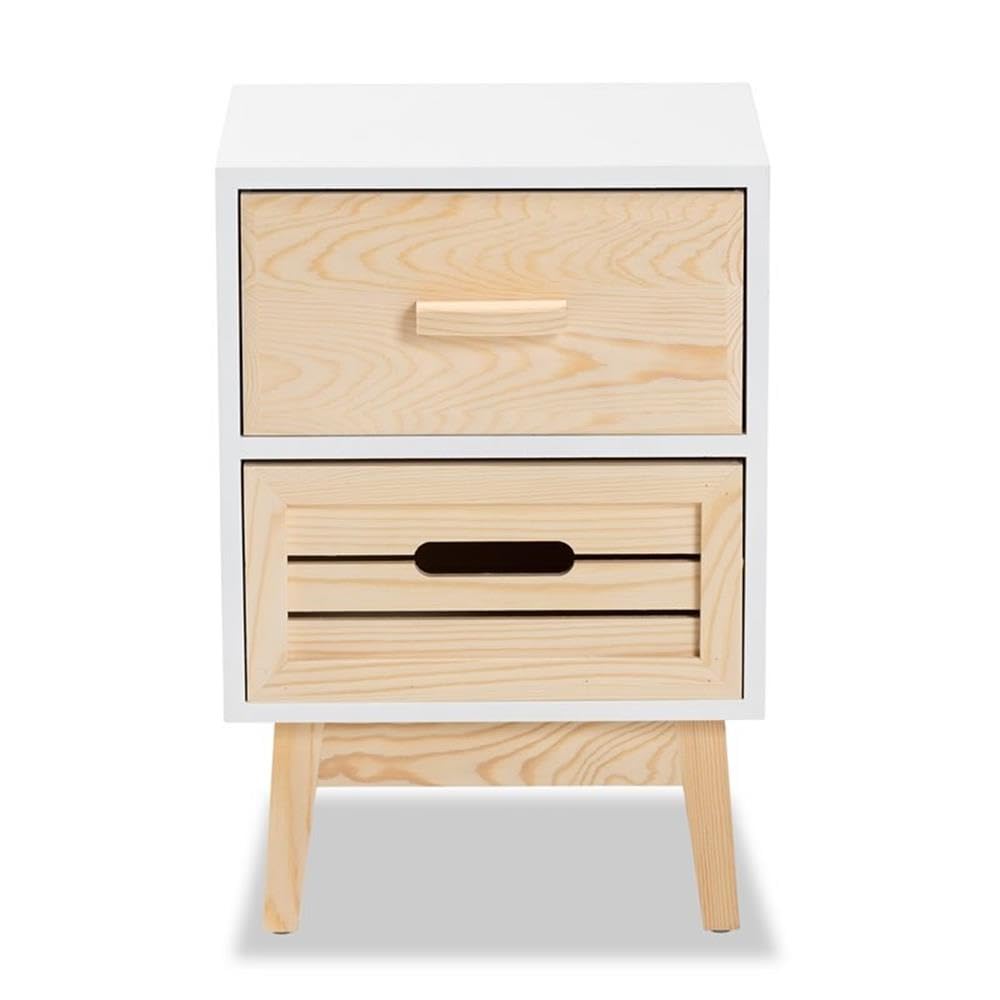 Baxton Studio Kalida Mid-Century Modern Two-Tone White and Oak Brown Finished Wood 2-Drawer Nightstand