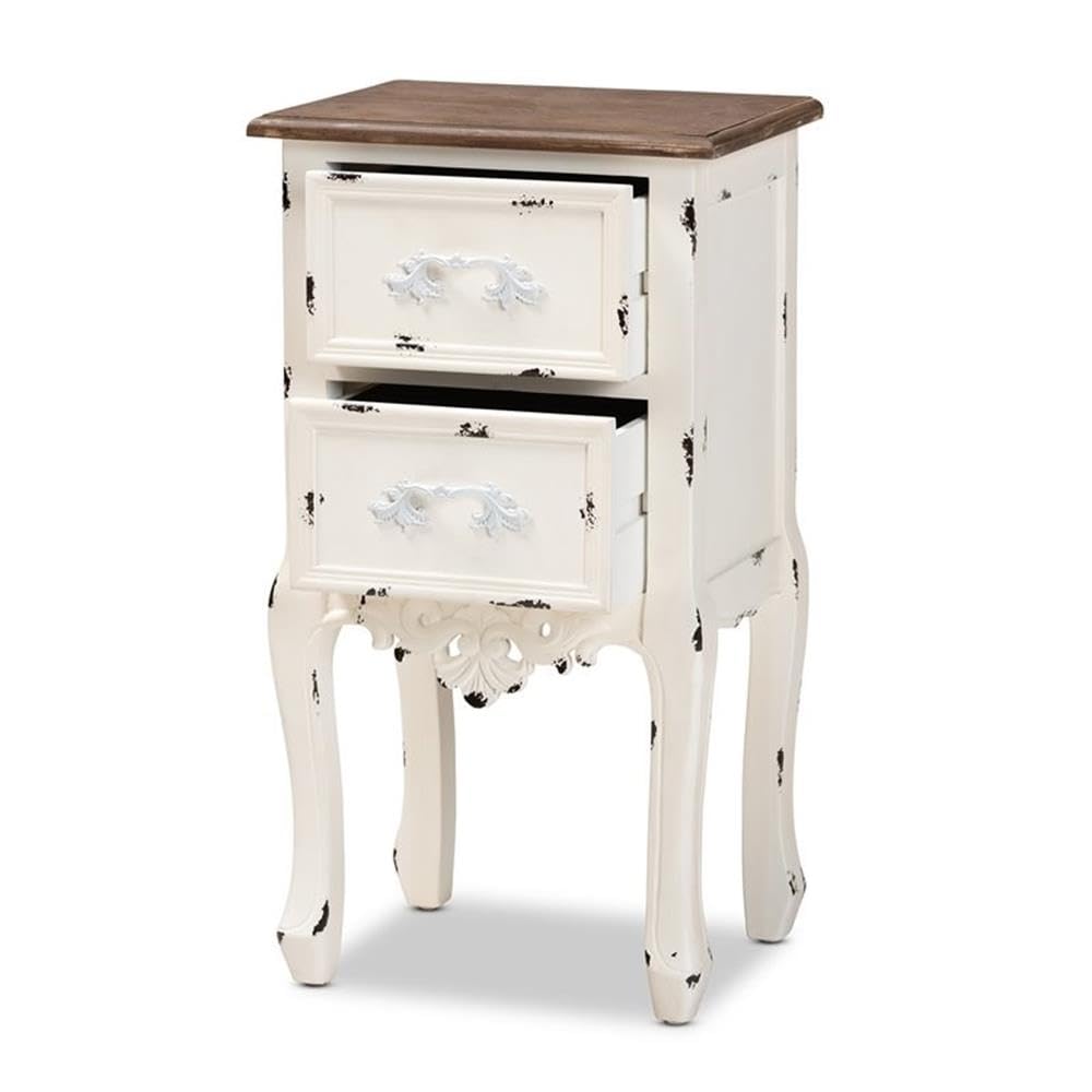 Baxton Studio Levron Classic and Traditional Two-Tone Walnut Brown and Antique White Finished Wood 2-Drawer Nightstand