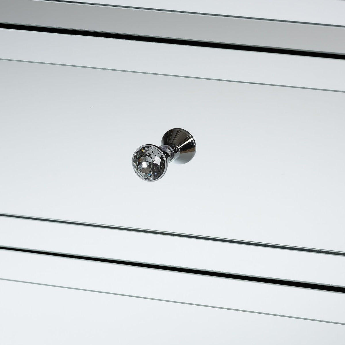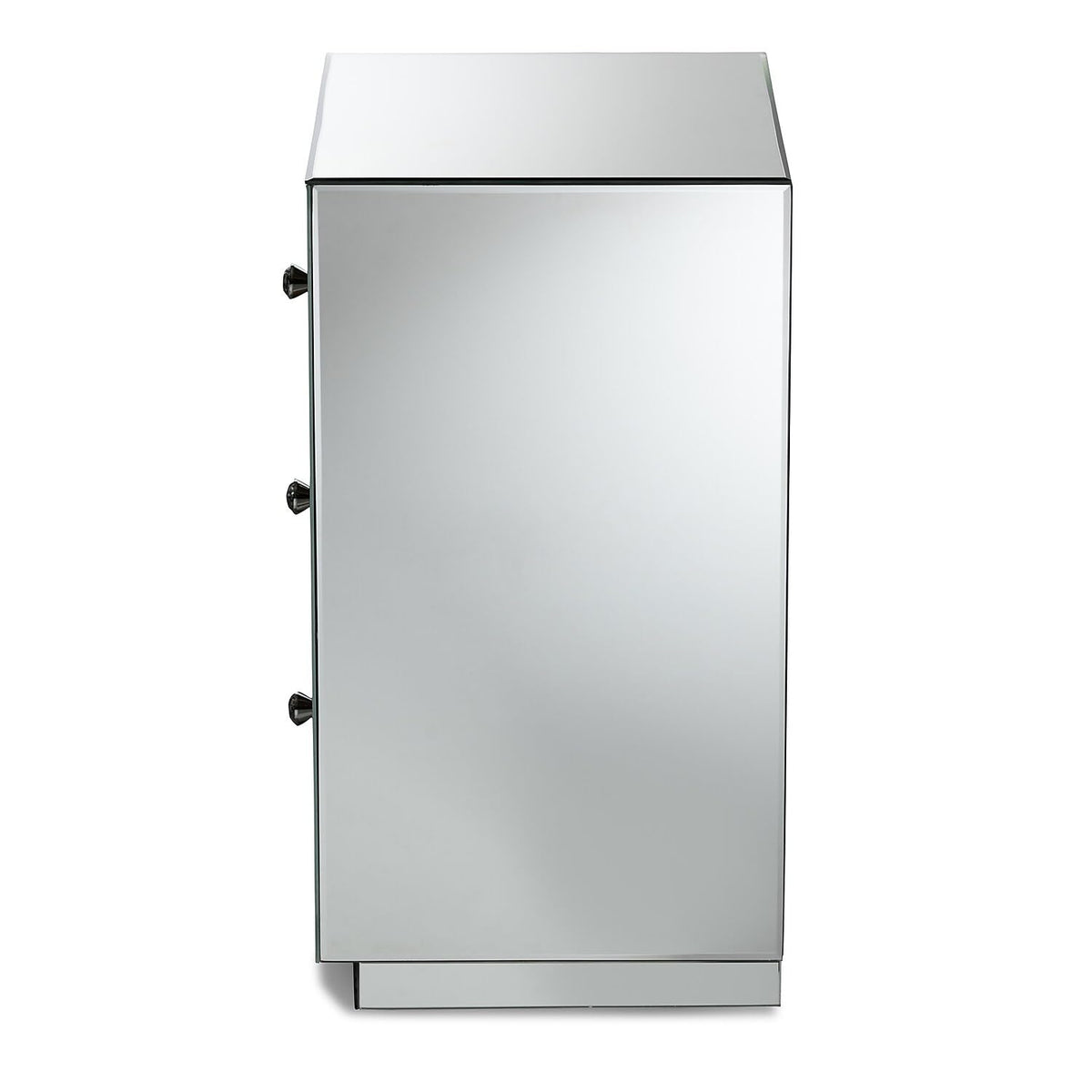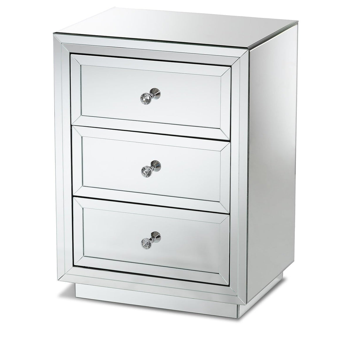 Give Your Room The Illusion Of Space With The Lina Mirrored Nightstand. Constructed From High-Quality Materials, The Lina Features A Mdf Wood Frame Overlaid With A Combination Of Plain And Beveled Mirrors. Three Wide Drawers Provide Ample Storage Space For Lotion, Headphones, And More. The Front Of The Nightstand Showcases A Beveled Surface, Adding An Element Of Interest. Crystal Drawer Knobs Add A Decorative Touch. The Lina Nightstand Is Made In China And Will Arrive Fully Assembled.