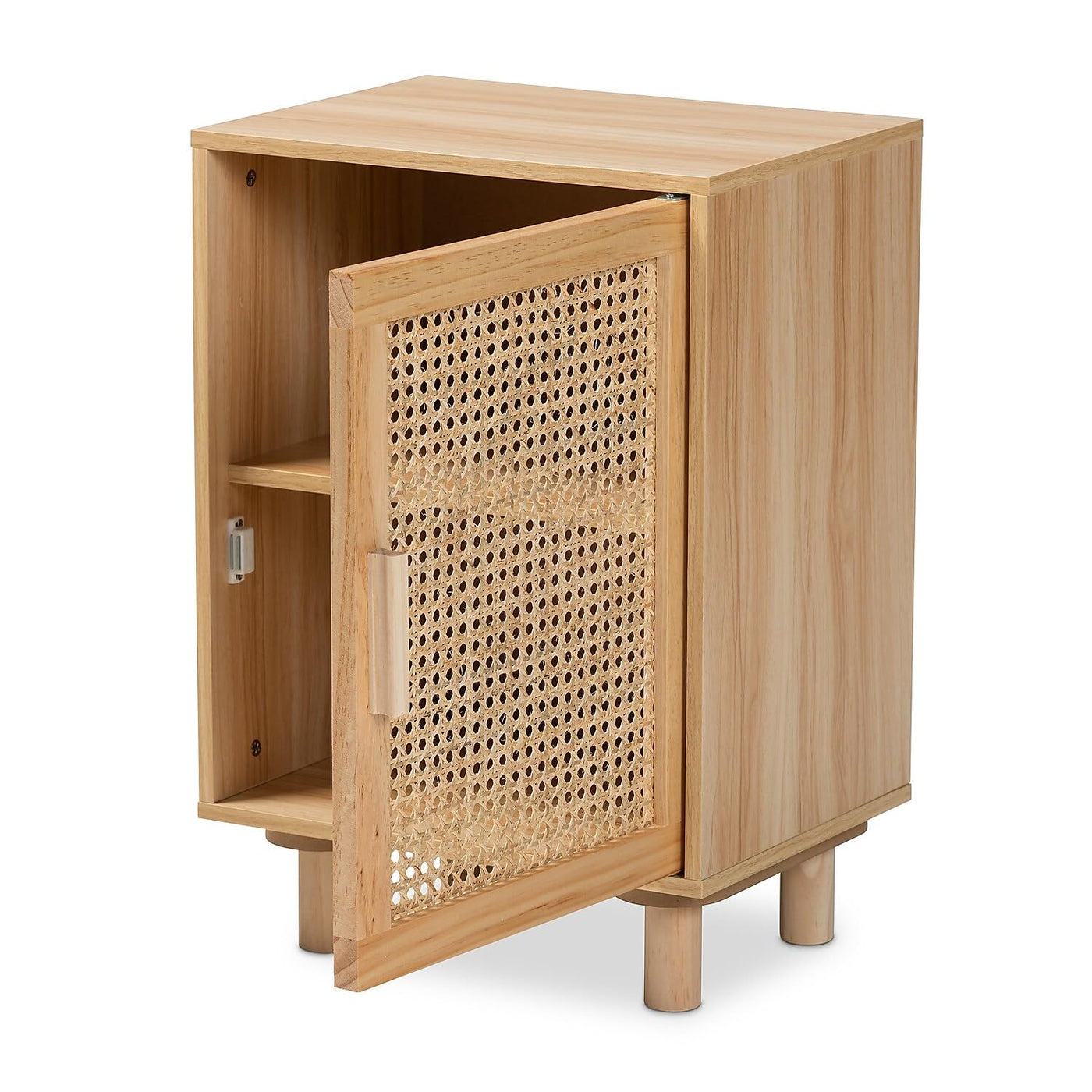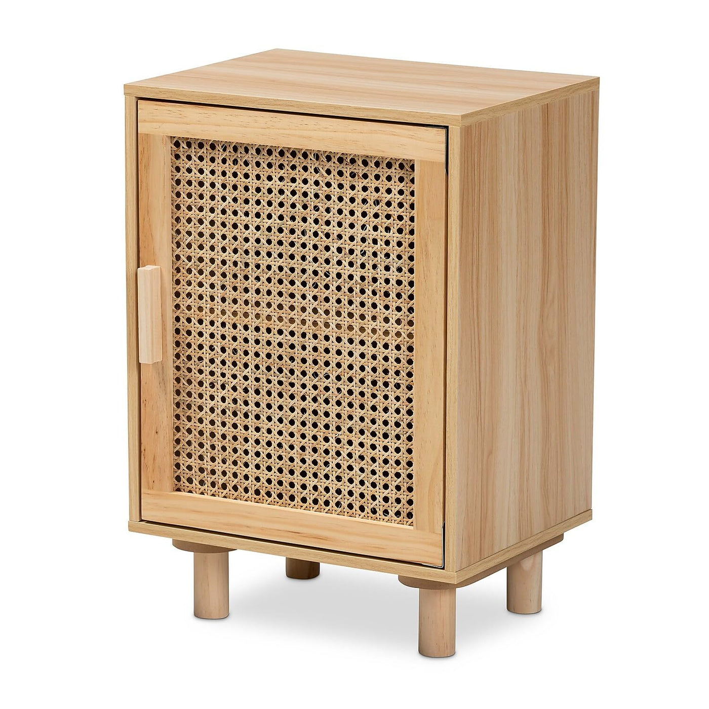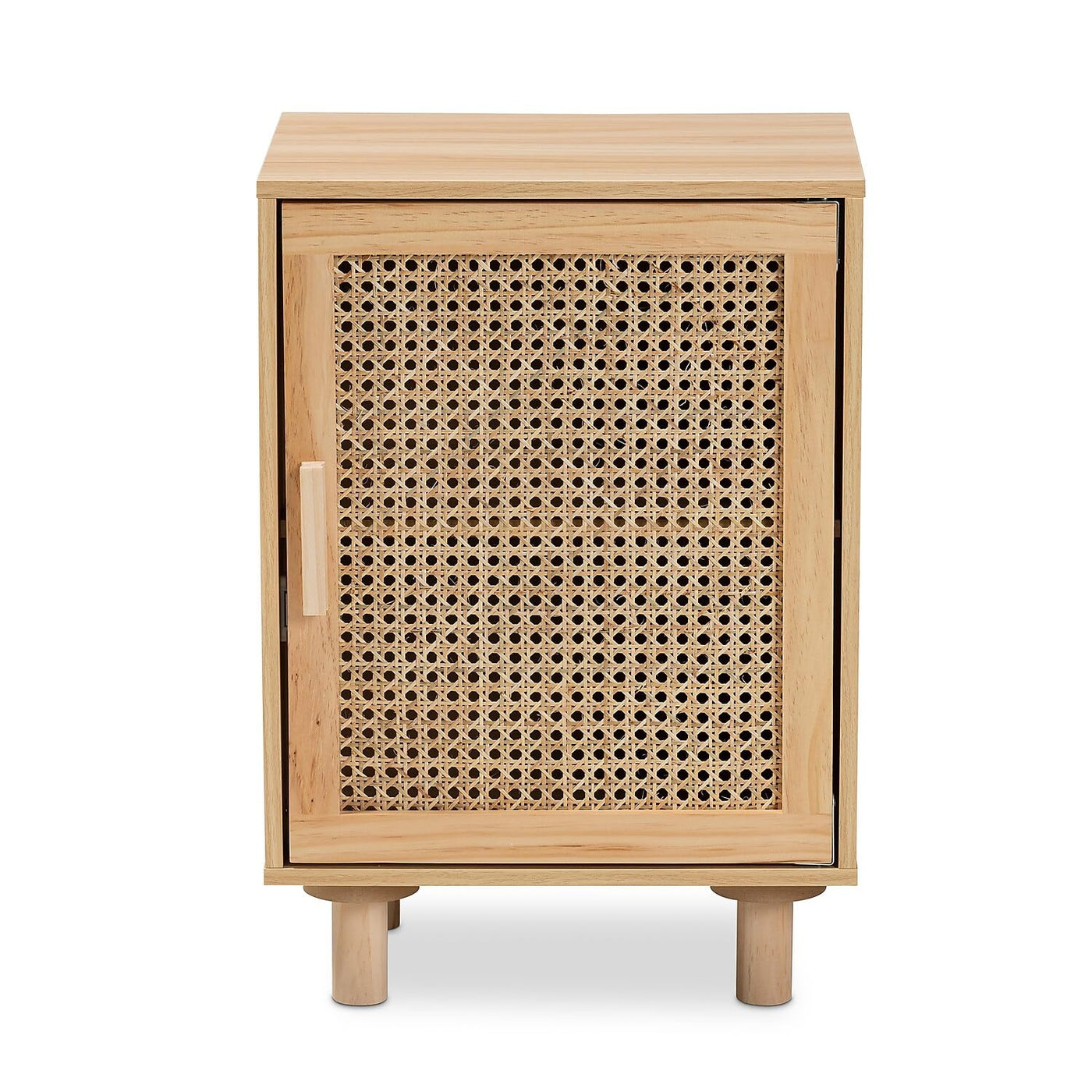 Baxton Studio Maclean Mid-Century Modern Rattan and Natural Brown Finished Wood 1-Door Nightstand