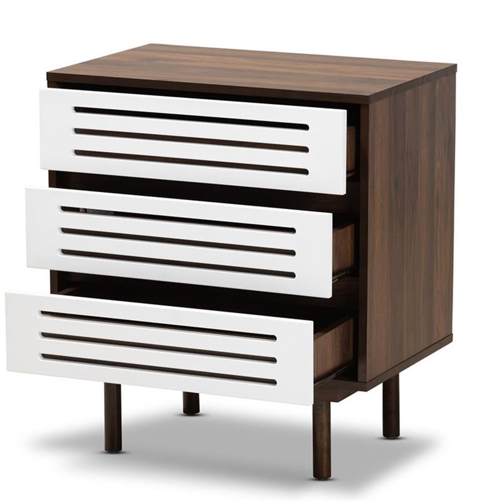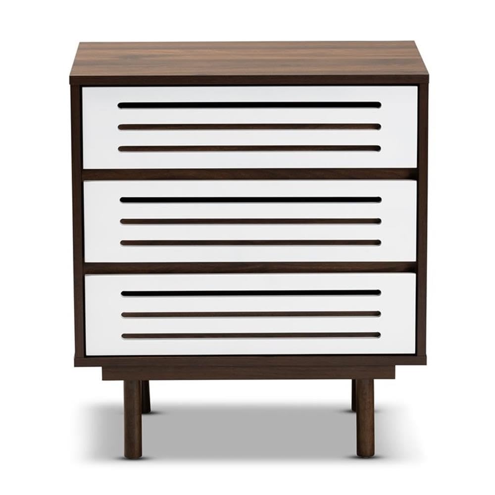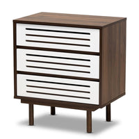 Baxton Studio Meike Mid-Century Modern Two-Tone Walnut Brown and White Finished Wood 3-Drawer Nightstand