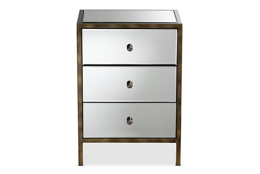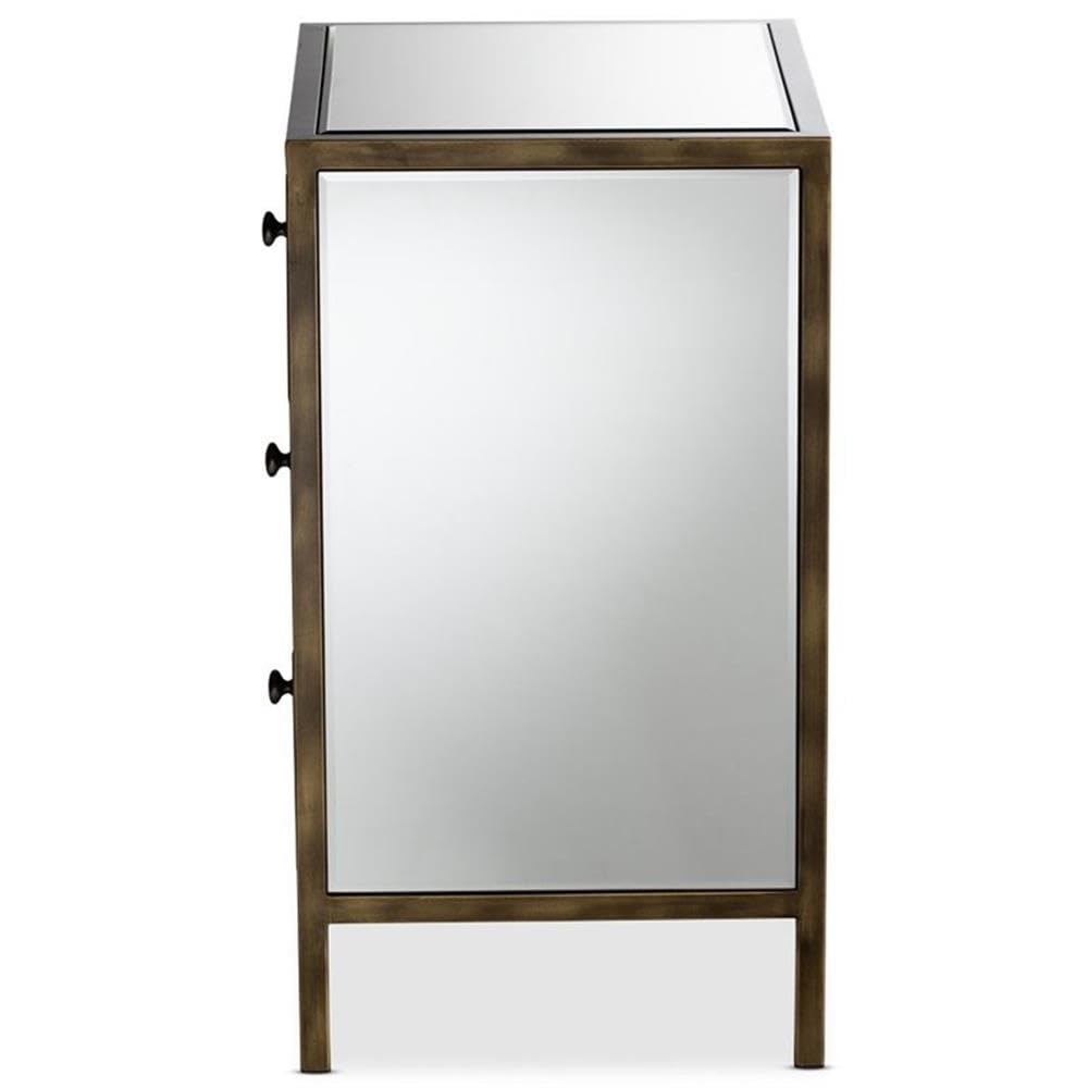 Baxton Studio Mirrored Modern Nightstand 3 Drawer Bedside Table Hollywood Glam Style - Wholesale Interiors Wood