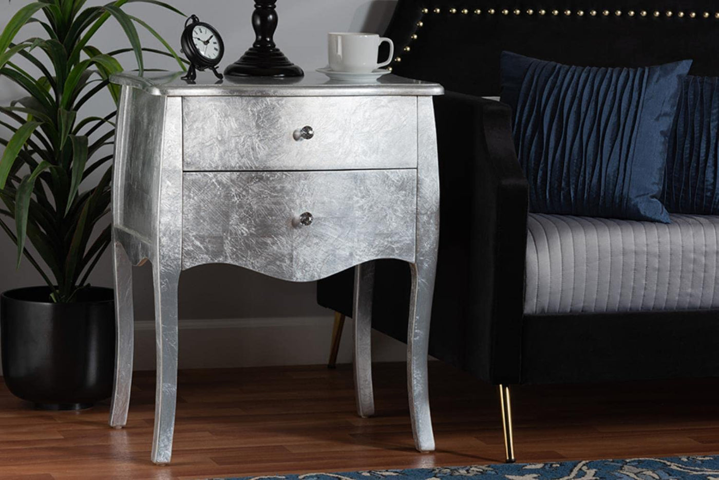 Baxton Studio Patrice Silver Finished Wood 2-Drawer End Table