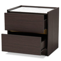 Baxton Studio Walker Modern and Contemporary Dark Brown and Gold Finished Wood Nightstand with Faux Marble Top