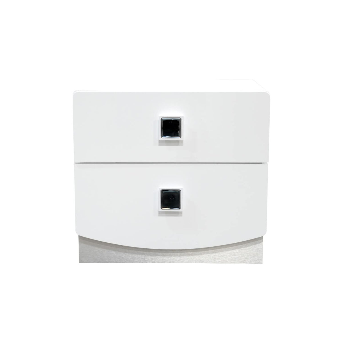 This Stunning 2 Drawer Nightstand Has Everything You Are Looking For. It Comes In High Gloss White Shiny Lacquer With Crystal On Handles And Metal Rails For The Drawers. It Is The Perfect Nightstand For Your Bedroom Or For The Guest Room.Features:Finish: White Lacquer, High Gloss With Extra Codingmaterial: Poplar Wood, Engineered Wood, Lacquer, High Gloss With Extra Codingincludes One (1) Nightstand Onlyassembly Is Requiredspecifications:Nightstand Dimensions: 21"W X 16"D X 20"Hproduct Weight: 42 Lbssurface Material: Poplar Wood, Engineered Wood, Lacquer, High Gloss With Extra Coding
