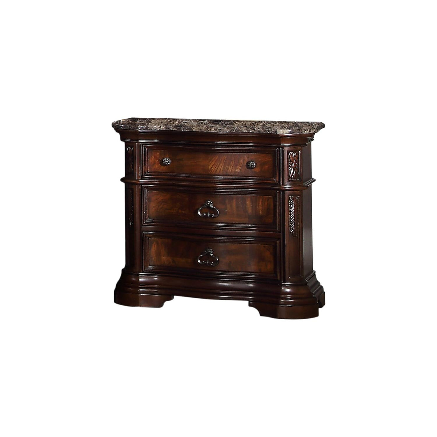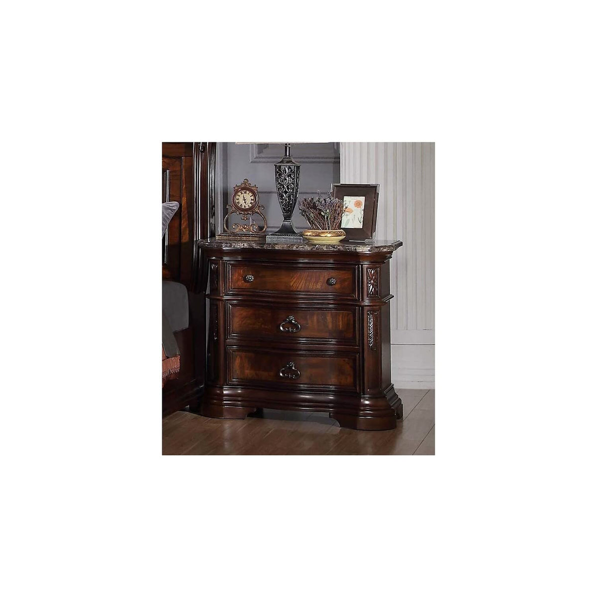 Please Note: Accessories Not Included Decorate Your Room With This Truly Sophisticated Style Nightstand. This Nightstand Is Perfectly Carved To Perfection In Walnut Color. The Nightstand Comes With A Marble Top And All Drawers Comes With Metal Side Rails. If You'Re Looking For A Big Bedroom Space To Fill Up Your Master Suite, This Would Be A Perfect Set. Dimension Nightstand 32"L X 18"D X 30"H Color: Walnut Includes: One (1) Pc Nightstand Material: Solid Wood With Manufactured Wood, Birch Wood, Marble Assembly Not Required