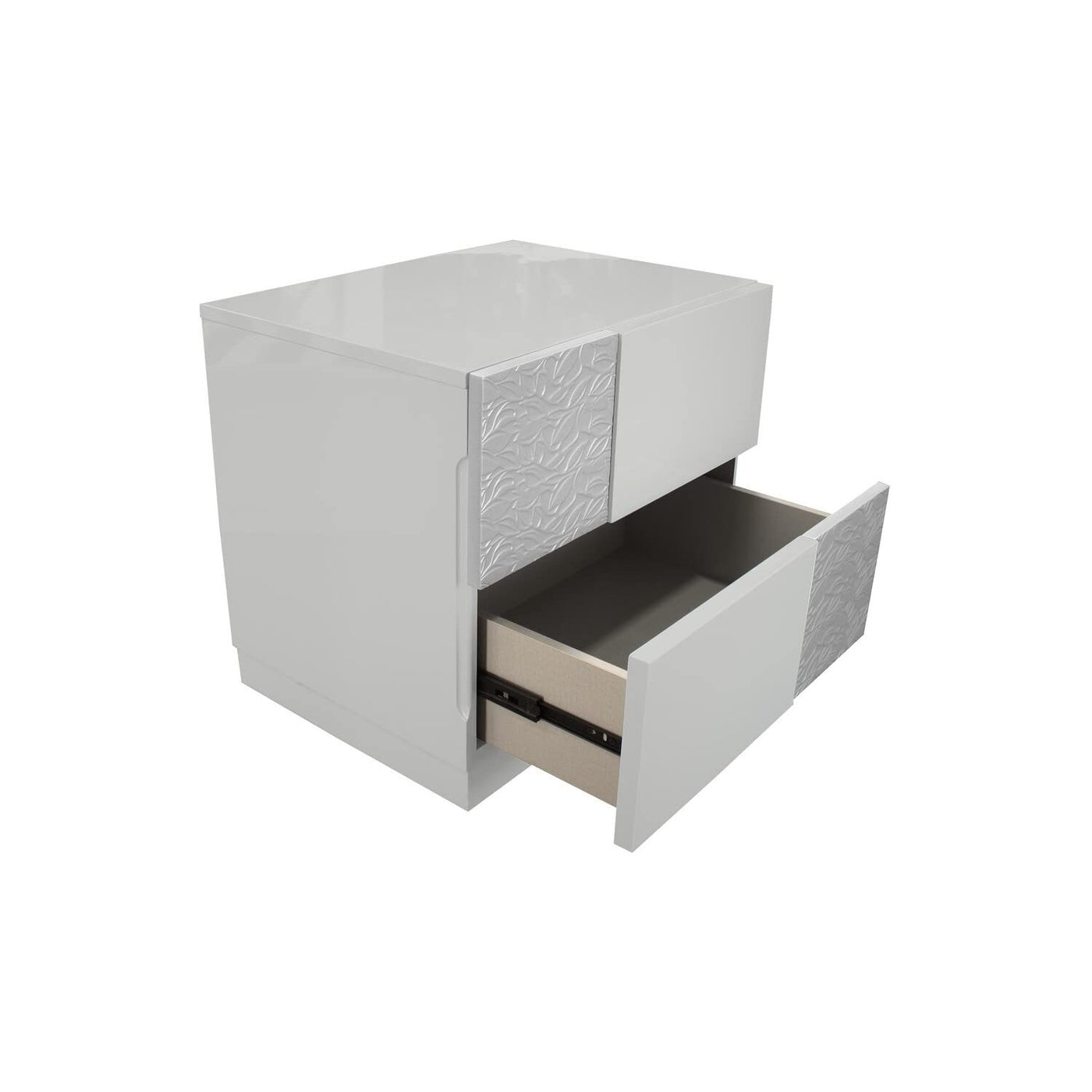 Combined With Sophistication And Modern Design. This Naple Nightstand Will Add A New Look To Your Bedroom. This Nightstand Is Made Of Poplar Wood, Mdf, Lacquer And Covered In High Gloss. It Comes With 2 Drawers With Metal Side Rails.Dimensions:Nightstand 21"L X 16"D X 20"H (Drawer Dimension 12"L X 12.5"D X 5.5"H)Color: Gray (Silver Line)Material: Poplar Wood, Mdf, Lacquer, High Glossincludes: 1 Pc Nightstandassembly Not Required