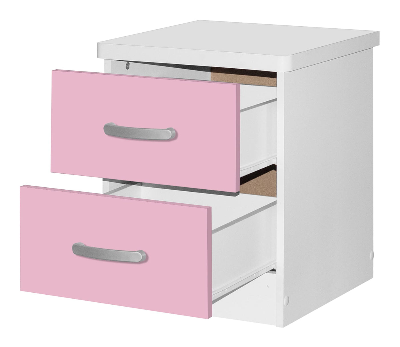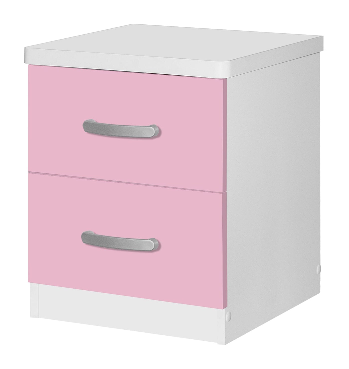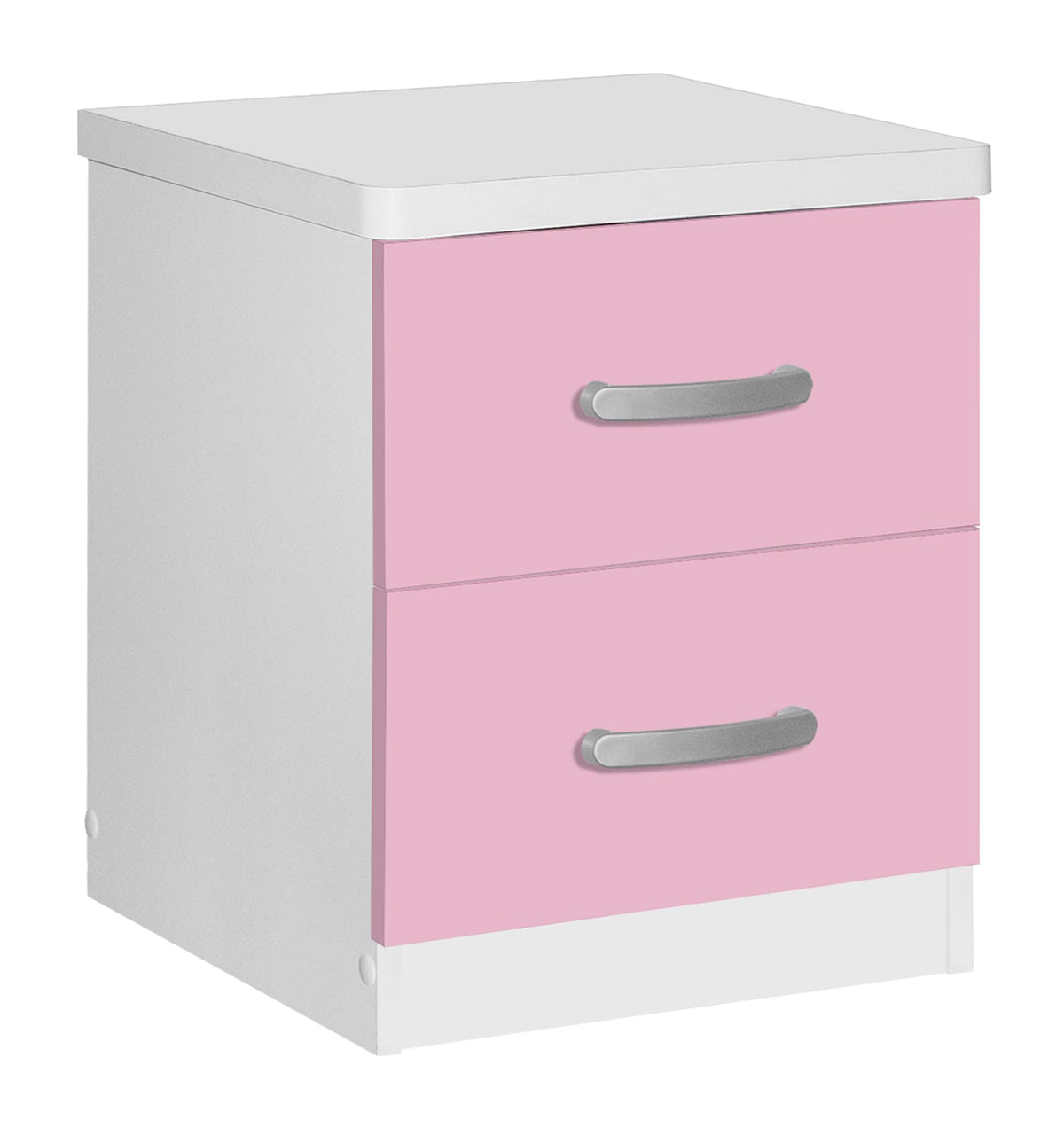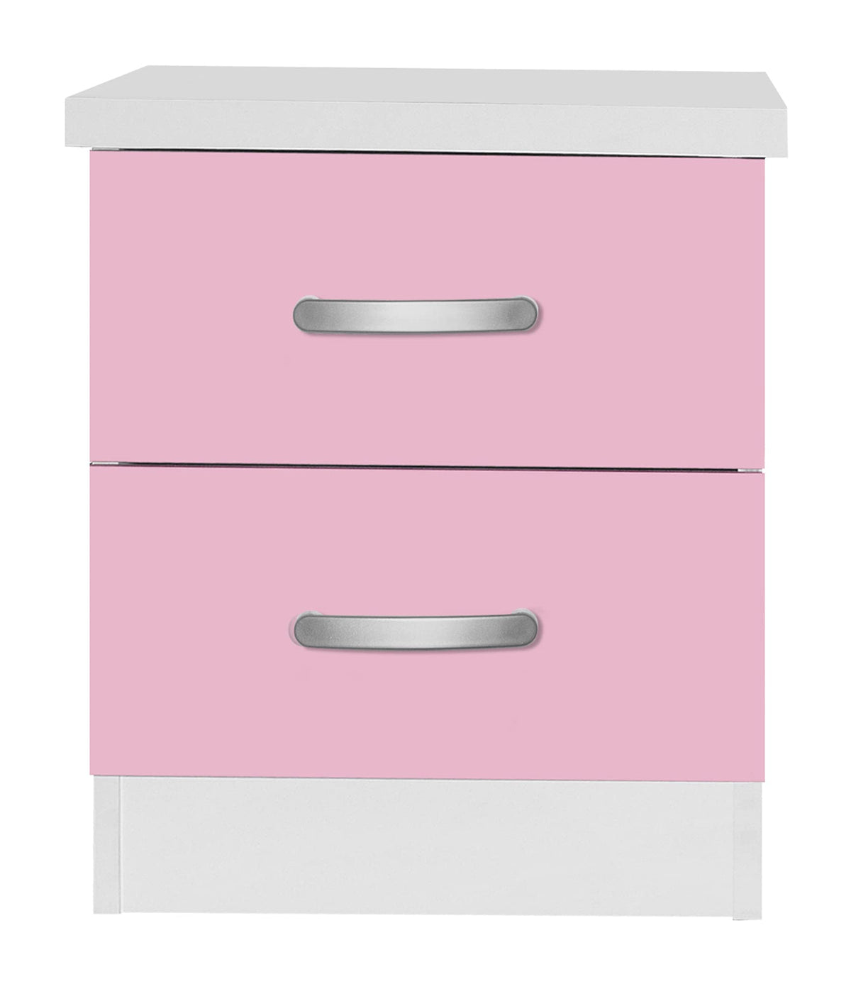 Sleek and slender bedside storage. The Better Home Products Cindy Faux Wood 2 Drawer Nightstand keeps bedside necessities at bay. Helping to orchestrate a clutter free room, this laminated engineered wood nightstand takes up minimal space and meshes with a variety of decor styles. Streamlined silver finish plastic bar handles and round edges give the Cindy line its simple chic feel. Standing strong with metal drawer liners and an easy to clean surface this nightstand will be a productive and durable piece in your room. Available in Beech (Maple), Blue and Beech, Black, Gray, Mahogany, White and Pink and White color finish. Assembly Required.